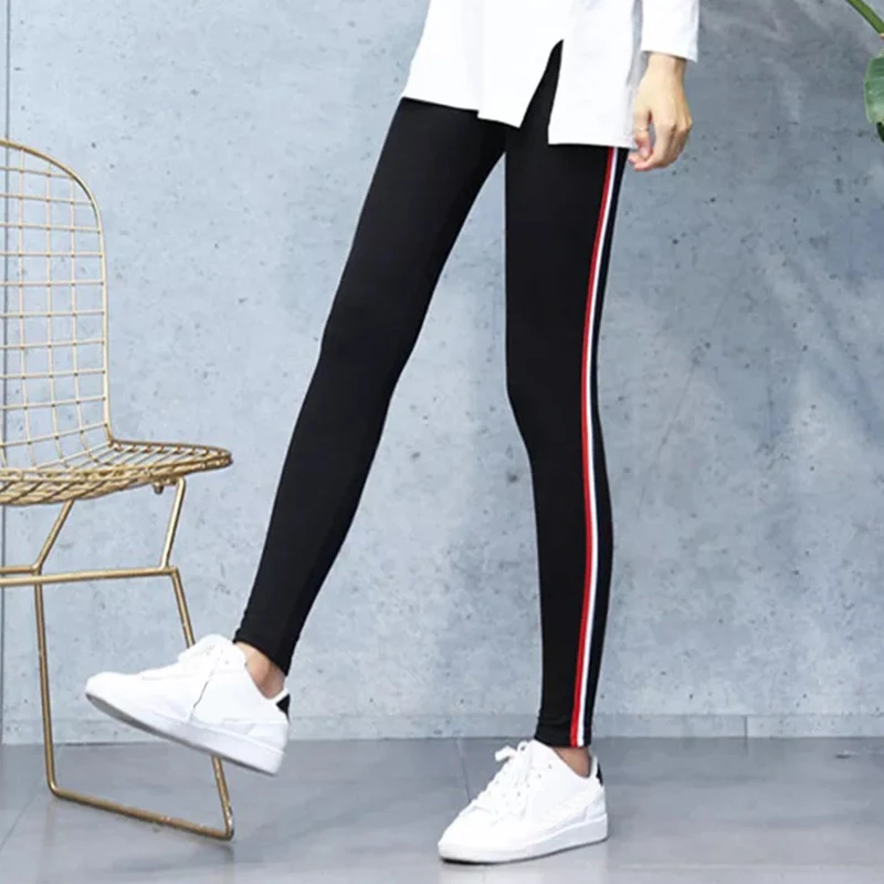 Workout Pants Women’s Super Elastic Sportes Pants Black Gray Tummy Control Capris Pants Fashion Stripe On side Plus Size S-5XL