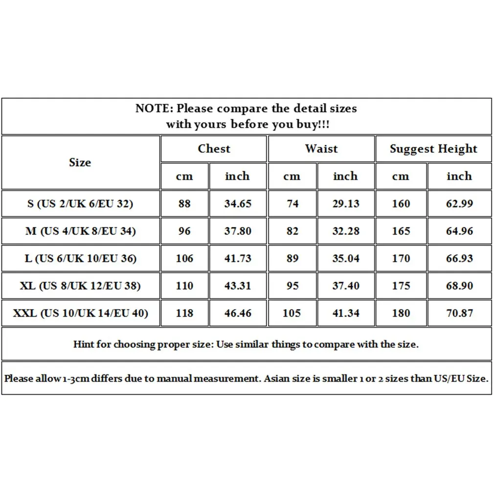 XL (US 8/UK 12/EU 38) 110cm/43.31inch 95cm/37.4inch 175cm/68.9inch