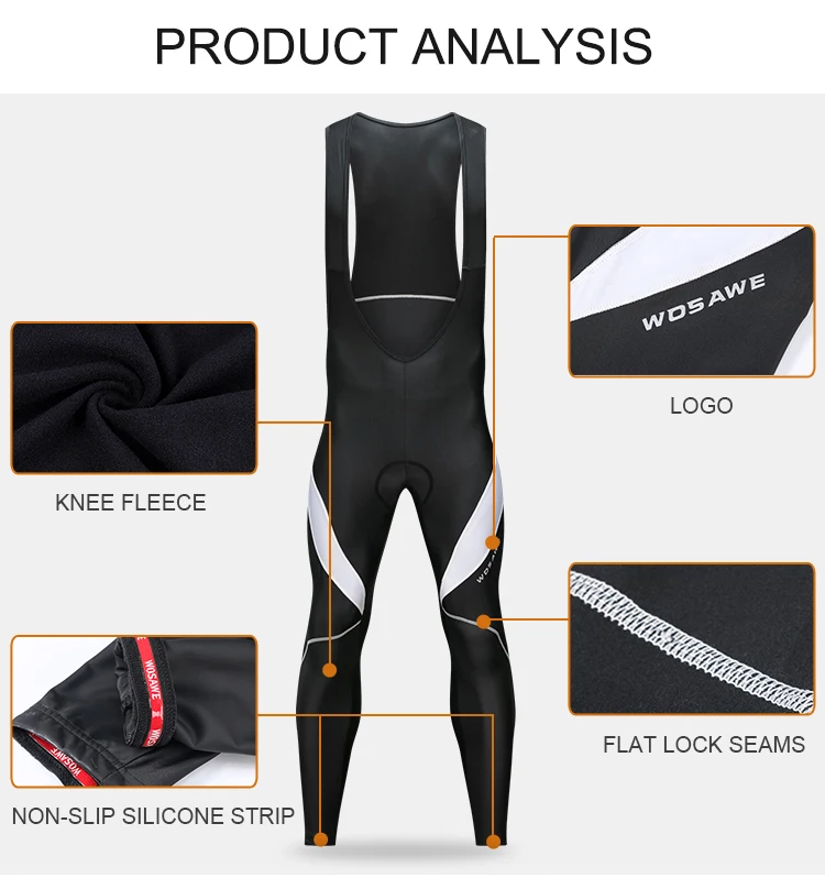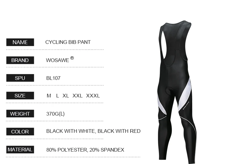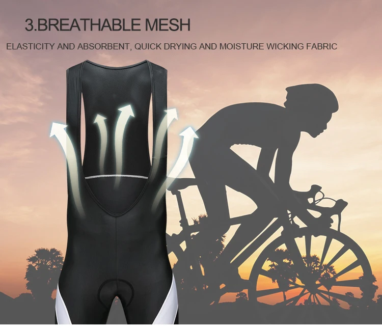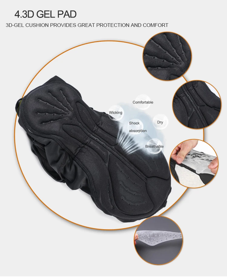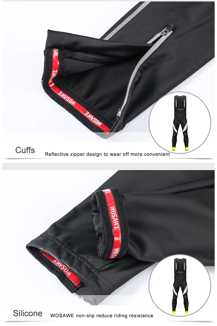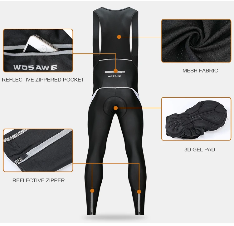 WOSAWE Gel Padded Cycling Pants Men Bib Clothes Ciclismo Bicycle 3D Silicone Cushion Reflective Maillot MTB Bike Tights Clothing