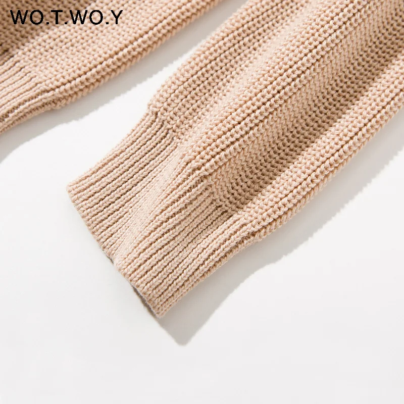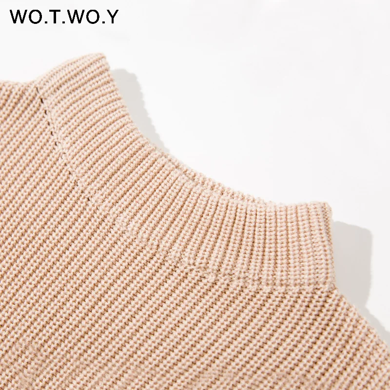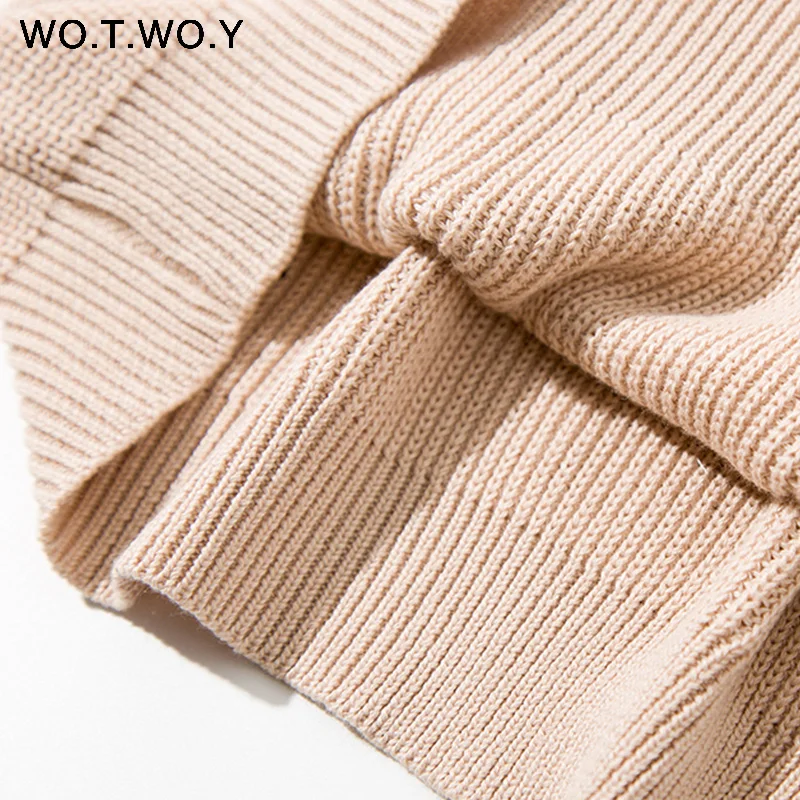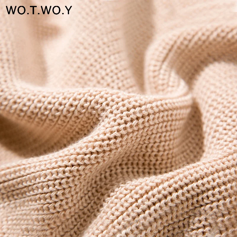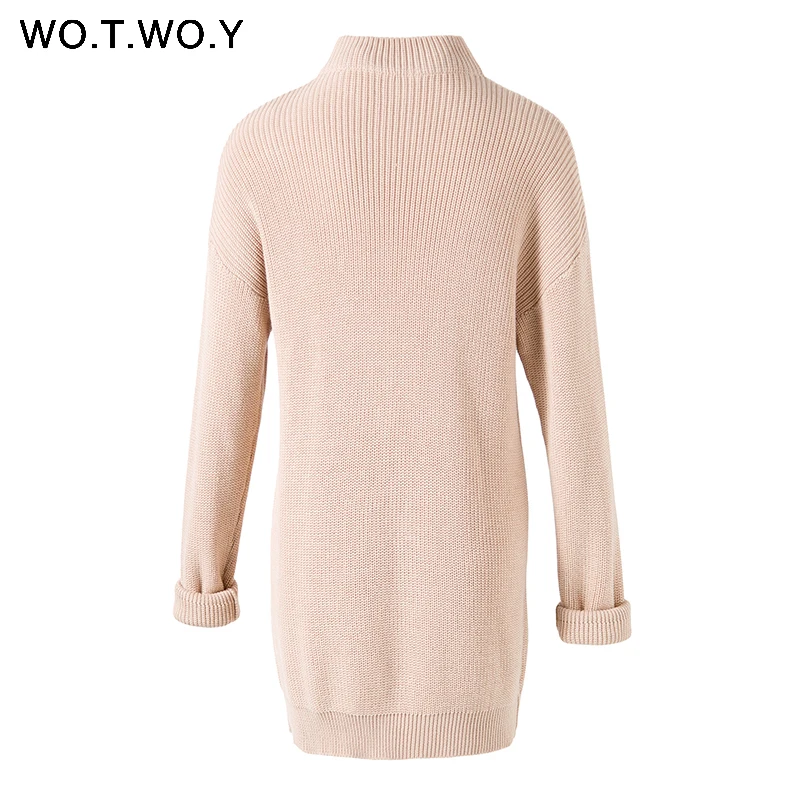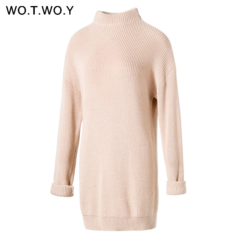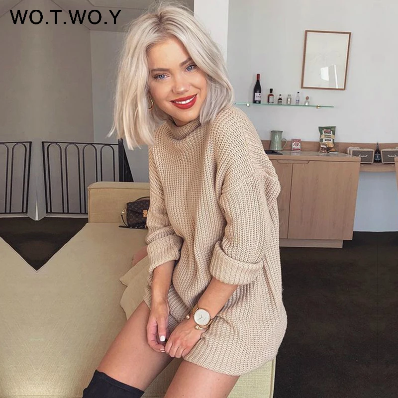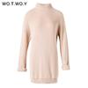 WOTWOY Turtleneck Long Sweater Dress Women Knitted Mini Dresses Women Long Sleeve Pullovers Female Autumn Dress Casual Jumpers