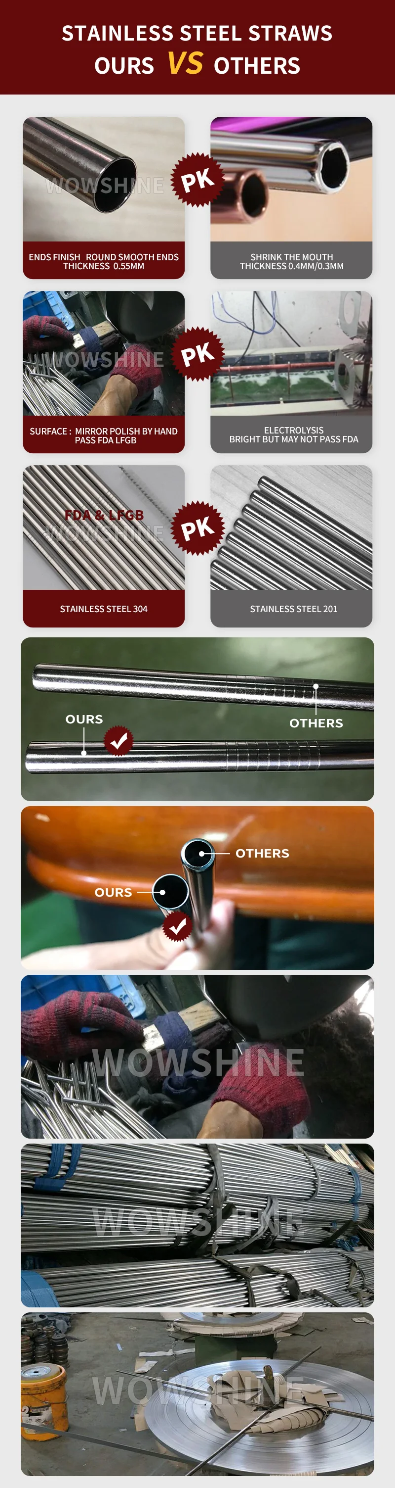 WOWSHINE Free shipping 80pcs/lot Bent Metal drinking straw food grade 8MMx215MMx0.55MM rust free 18/8 FDA LFGB passed