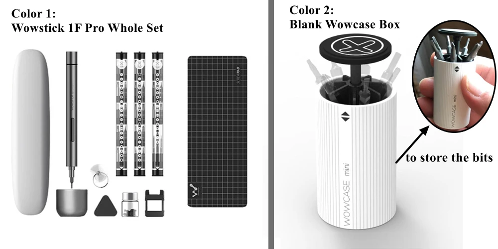 Wowstic just released the newest wowstick series mini power screwdriver named wowstick 1F Pro (1F+). The LED lighting and lithium battery powered functions come back just same as wowstick A1 and Wowstick 1S. It has the highest driving speed in all wowstick sereies electric screwdriver up to 200RPM load-free which is totally power enough for your electronics devices repair work such as smart phone,RC drones, joystick, computer, camera and so on. Slim aluminum alloy housing with pen shape design,just like holding a pen when you using it. 10400 rechargeable lithium battery provide scrw or unscrew driving power with manual and automatic working mode easy to use. Carefully choose 56pcs S2 steel screwdriver bits inluding Phillips,Slotted,Hex,Trox,5-point,Y-type,Square,Triangle,Square,U-type to compatible with most electronical devices.It also includes the wowpad, suction cup,screwdriver base, magnetizer and magnetic portable case enable you easy to carry and use.v |