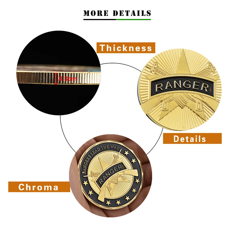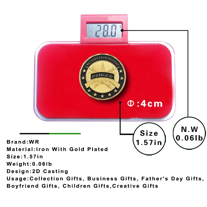 WR U.S. Army Coins Collectibles Rangers Lead the Way Gold Plated Copy Coins American Coin Replica Gifts Souvenirs for Birthday