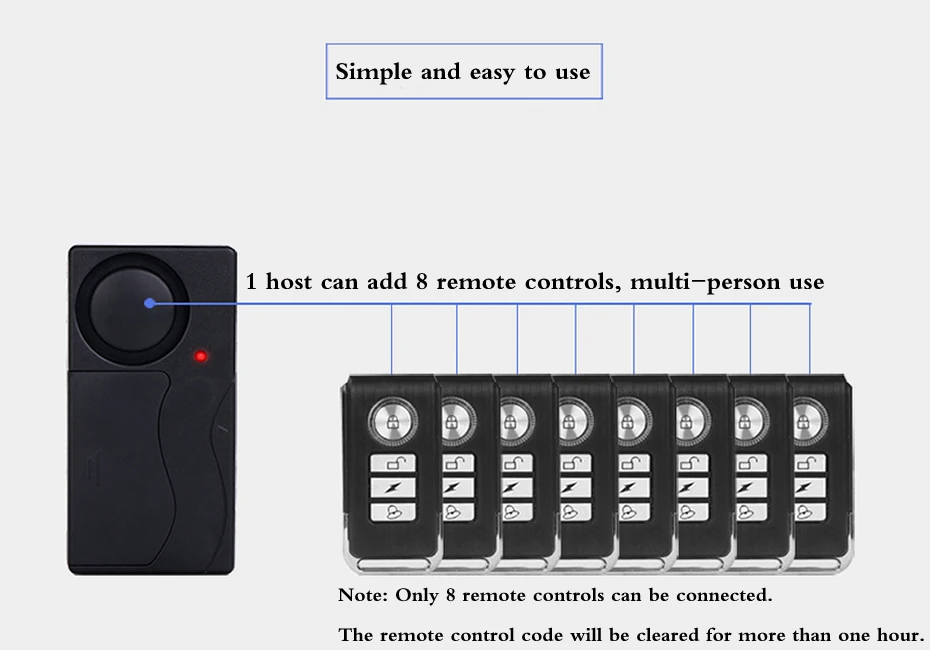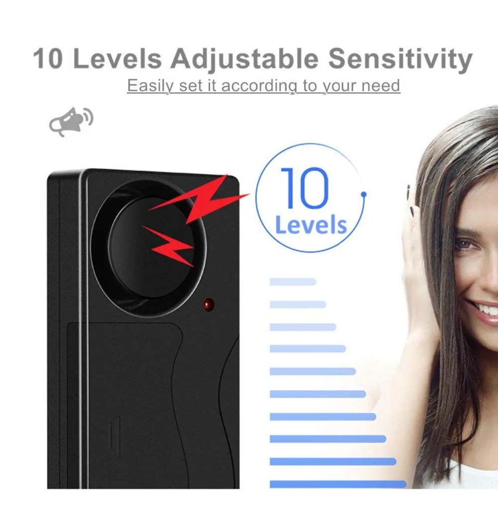 - Not only a safety/antitheft alarm, but also a Doorbell, in doorbell mode, the vibration alarmdetects vibration the host sound”Dingdong”