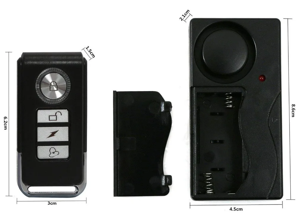 Wireless Vibration Alarm triggered by vibration, suitable for Bikes, Motorcycles, Vehicle, Doors, Windows or anthing you wish to protect, detering thieves effectively by 110dB loud alarm