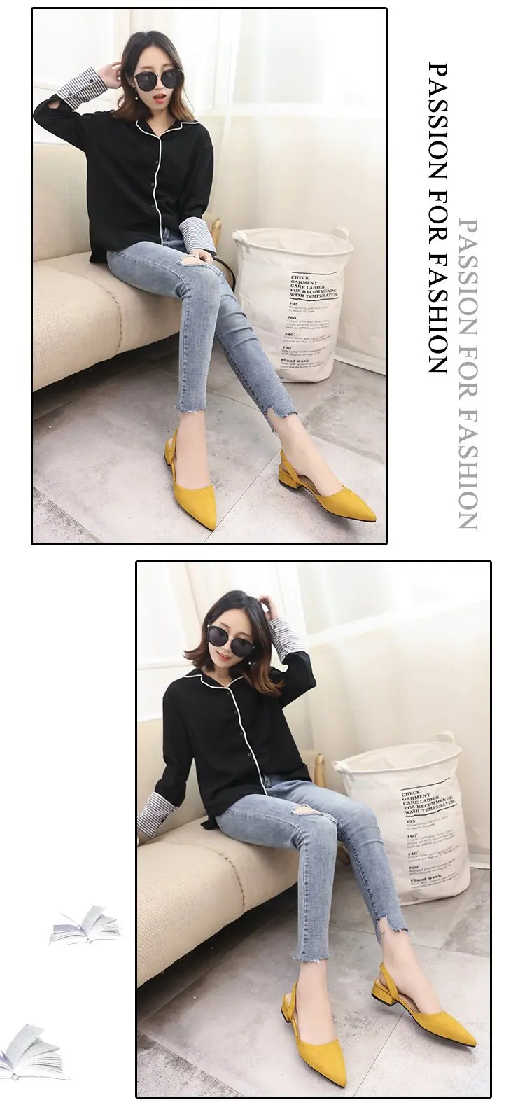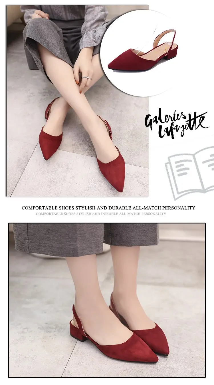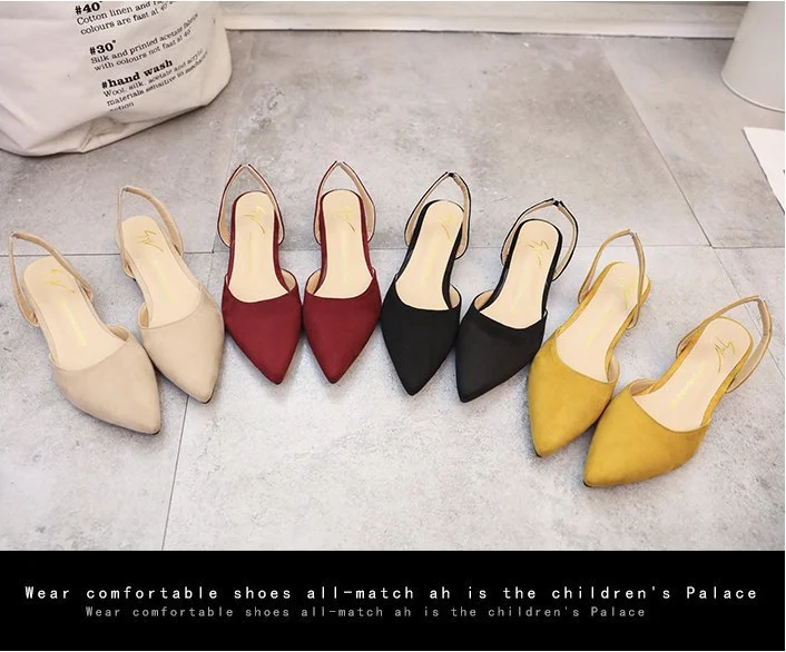 XEK New women sandals slingback sandals shoes for women pointy shallow suede sandals 2018 summer buckle slip on flat shoes WFQ54