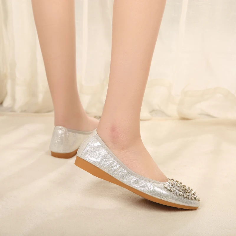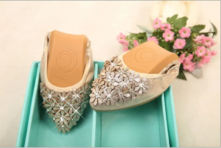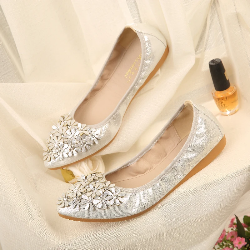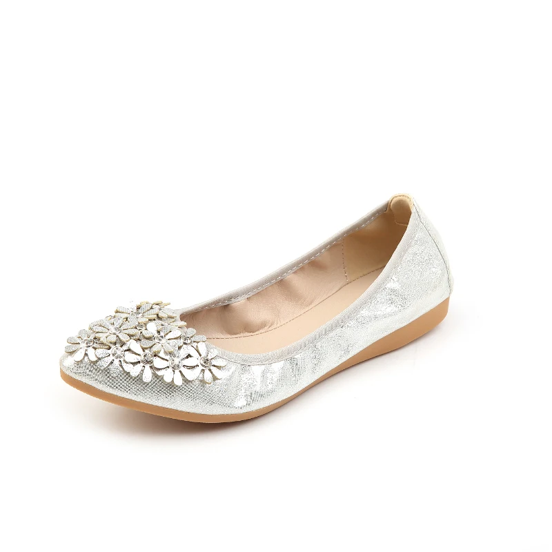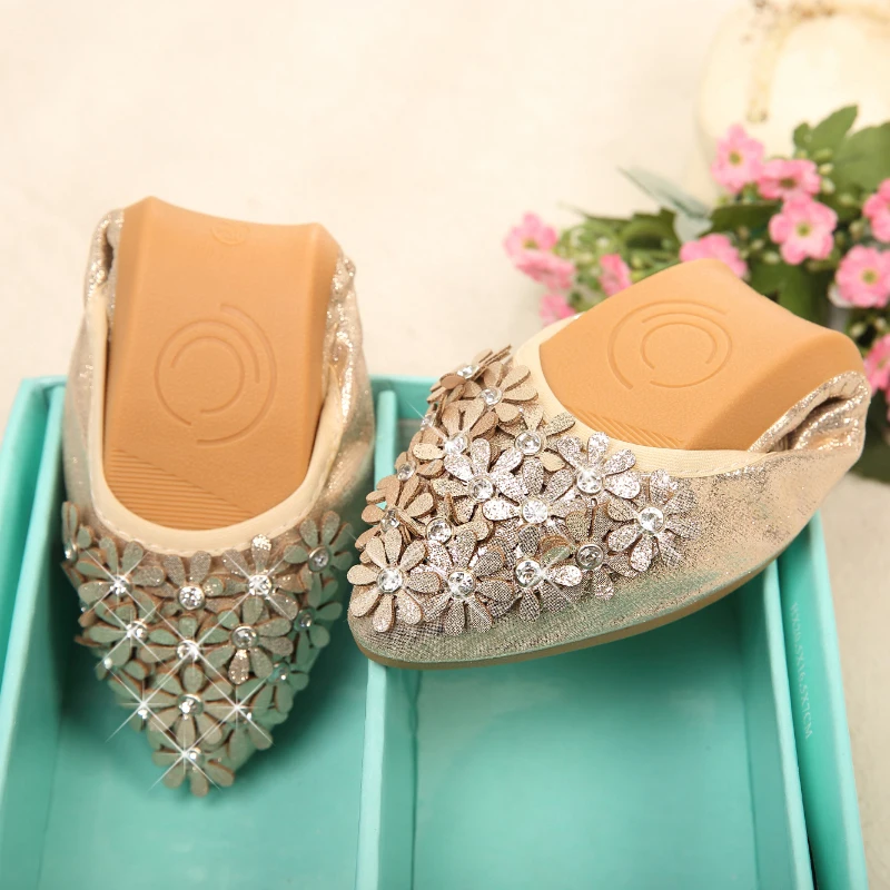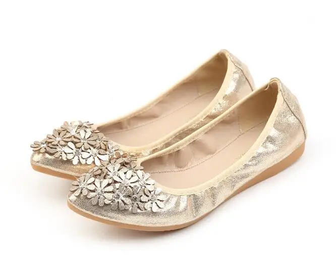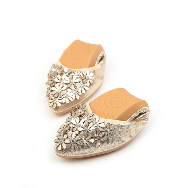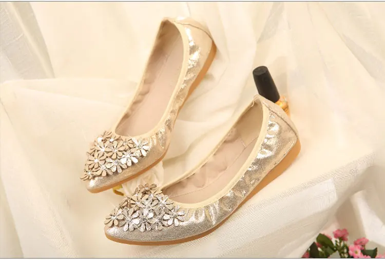 XGRAVITY Hot Crystal Flats Ballet Floral Flat Shoes Rhinestone Women Spring Autumn Flower Pointed Toe Golden Shoes Loafers C228