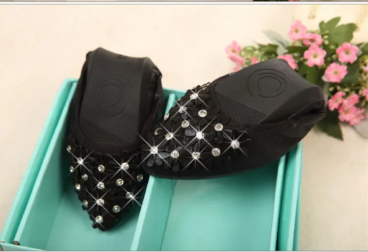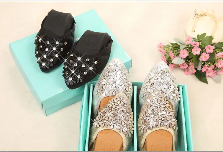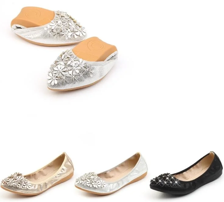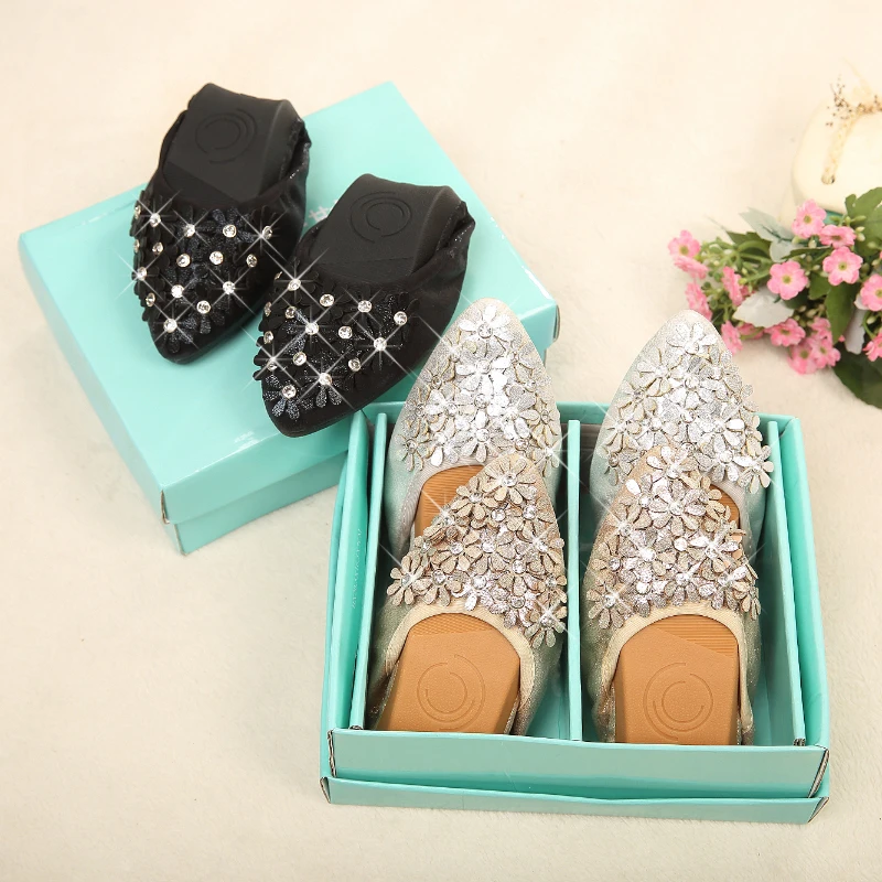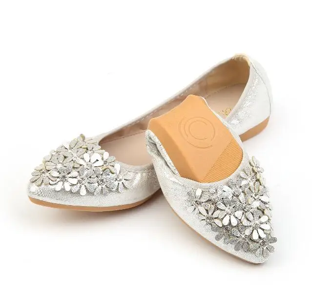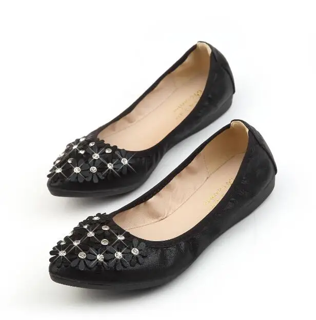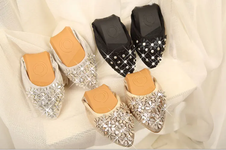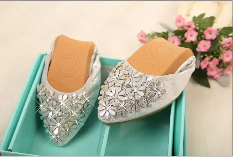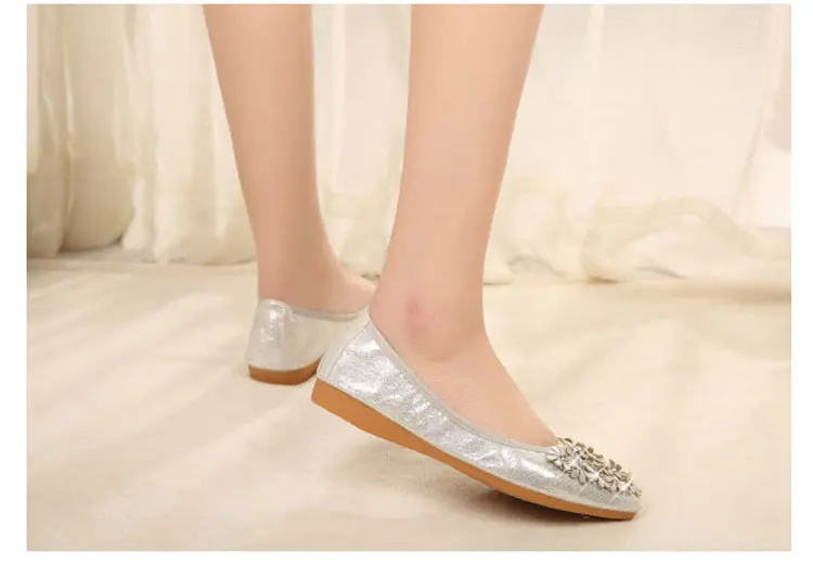 XGRAVITY Hot Crystal Flats Ballet Floral Flat Shoes Rhinestone Women Spring Autumn Flower Pointed Toe Golden Shoes Loafers C228