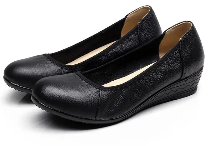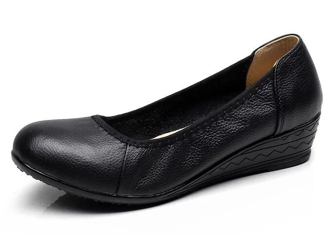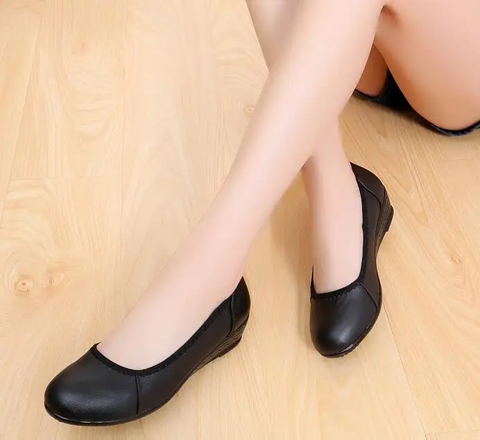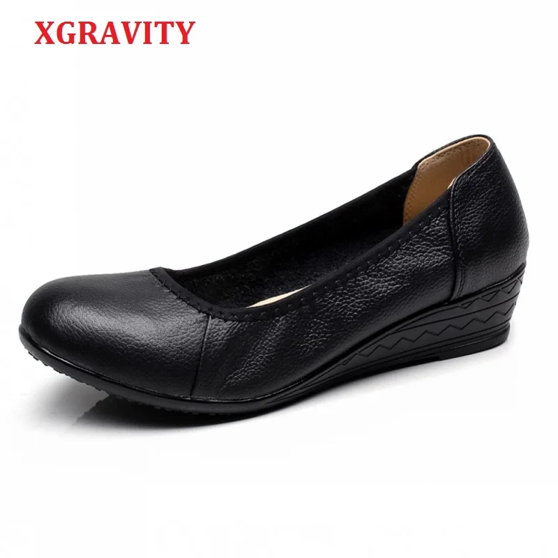 XGRAVITY Lady Comfortable Working Shoes Fashion Casual Black Women Elegant OL Round Toe Soft Woman Mid-Heeled Wedge Shoes A020