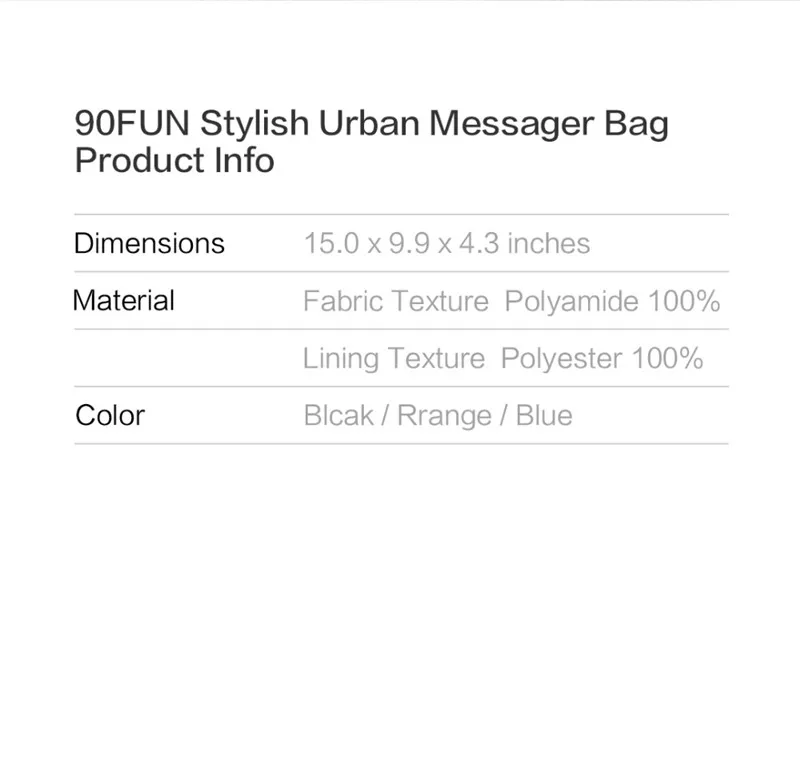 2018 NEW ARRIVAL 90FUN Stylish Urban Messenger Bag Crossbody 14″laptop bag