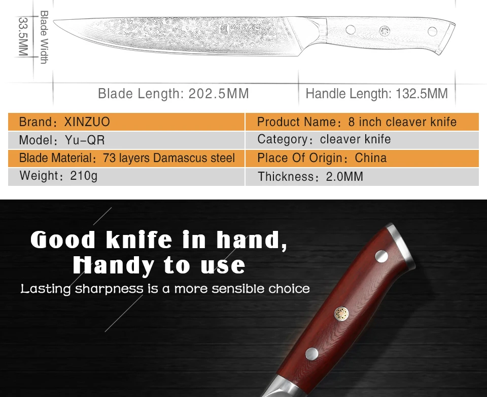 XINZUO 8″ Cleaver Knife Japanese Meat Knife Kitchen Cutlery VG10 Damascus New Slicing Master Knives BBQ Tools Rosewood Handle