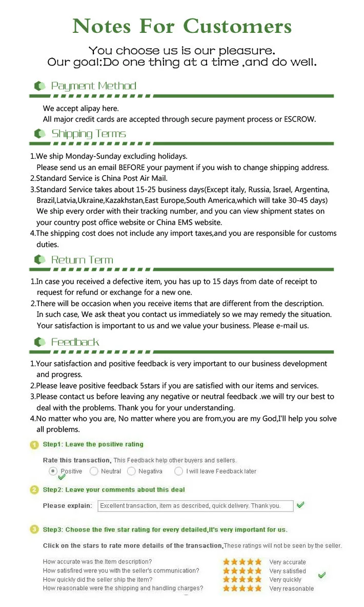 • If you did not receive the product within the guaranteed time( 45 days not including 2-5 day processing) you can request a refund or a reshipment.