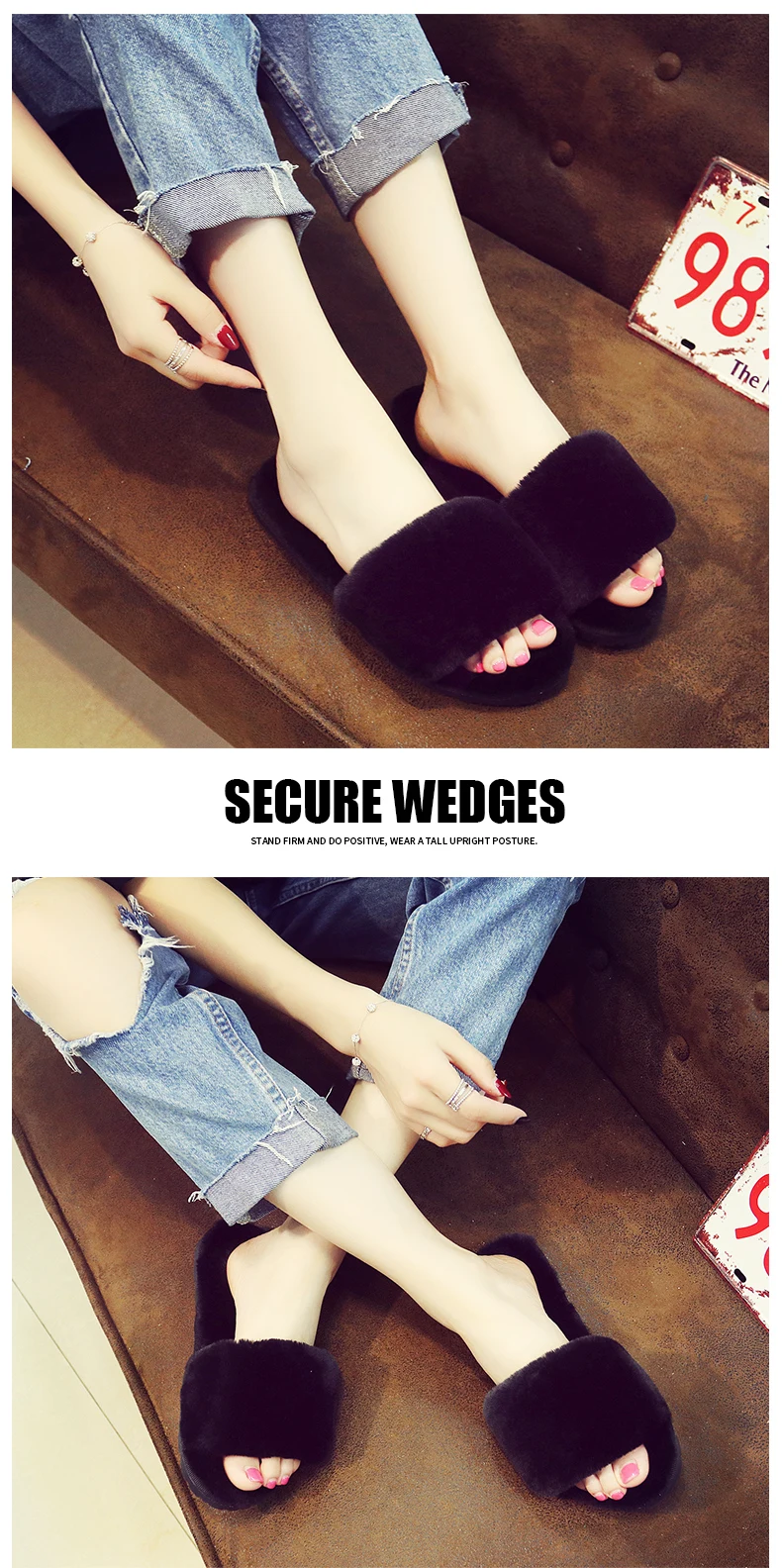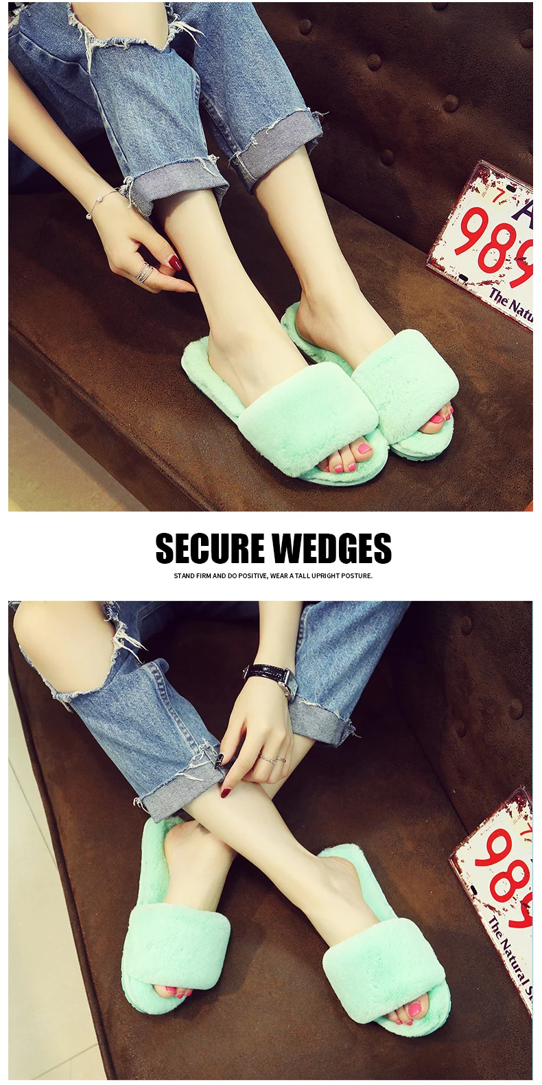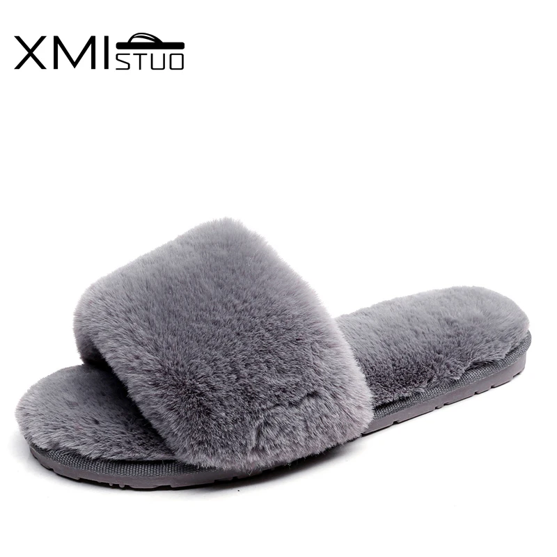 XMISTUO stylish breathable autumn and winter cotton slippers female anti-skid TPR soft bottom home warm long plush slippers