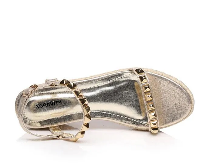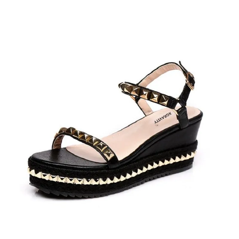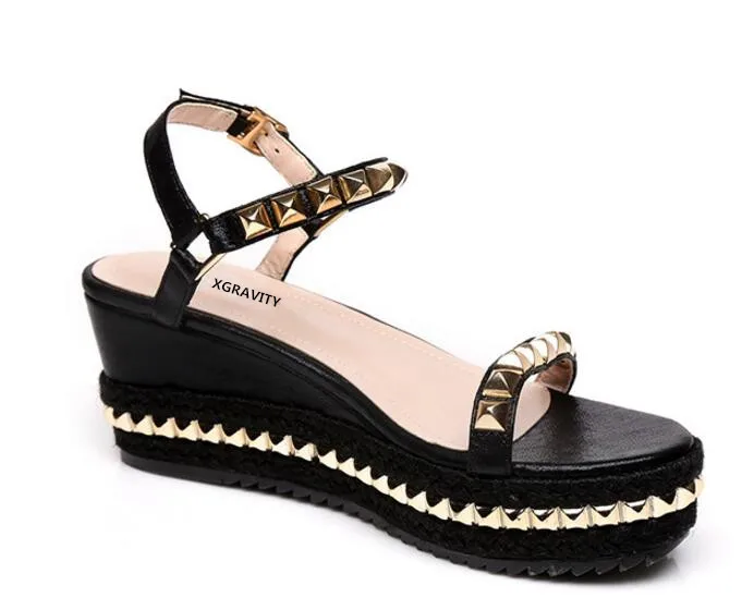 XNGRAVITY 2018 Hot Sales Summer Lady Fashion High Heel Wedge Sandals Elegant Rivets Design Lady Fashion Wedges Ladies Shoes 285