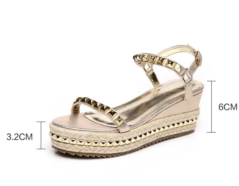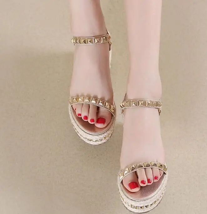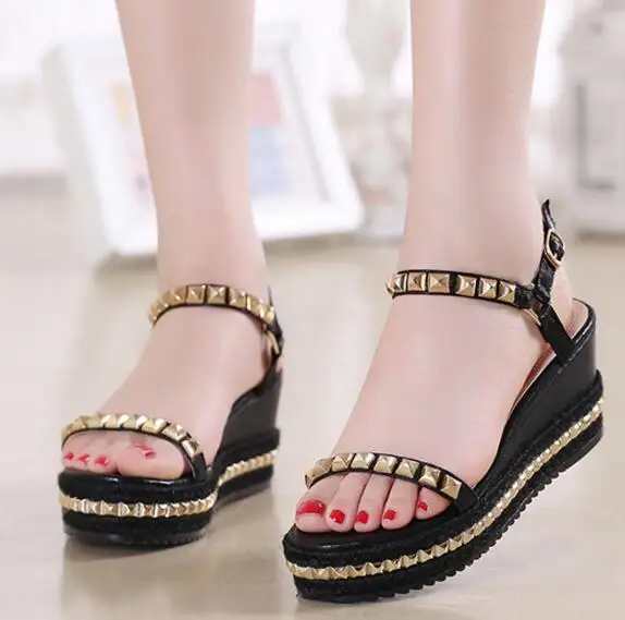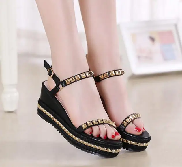 XNGRAVITY SIZE 34-40 Hot Summer Lady Fashion High Heel Wedge Sandals Elegant Rivets Design Lady Fashion Wedges Ladies Shoes 285