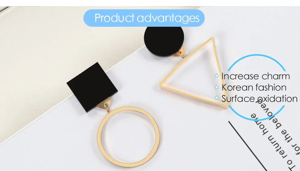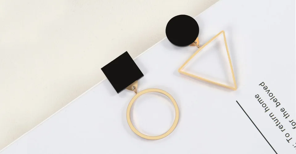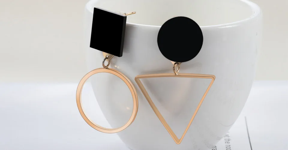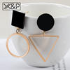 X&P Classic Korean Geometric Asymmetric Gold Silver Drop Earrings for Women Fashion PendientesTriangle Round Earring Jewelry