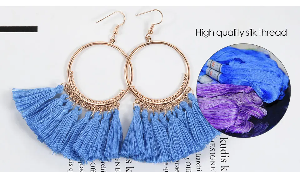 X&P Fashion Long Color Tassel Cotton Drop Earrings for Women Girl Bohemian Ethnic Geometric Cute Pendientes Earring Jewelry Gift