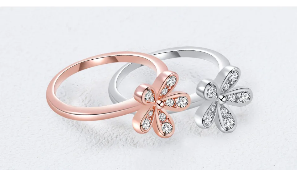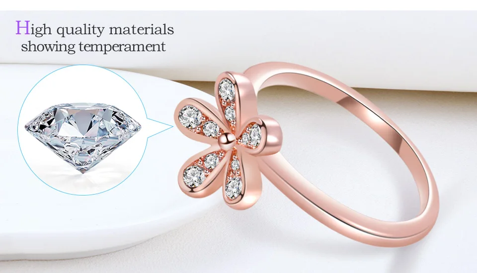 X&P Korean Romantic Rose Gold Silver Cubic Zirconia Rings for Women Girl Anniversary Fashion Flower Crystal Ring Jewelry Gift