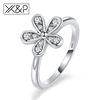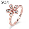 X&P Korean Romantic Rose Gold Silver Cubic Zirconia Rings for Women Girl Anniversary Fashion Flower Crystal Ring Jewelry Gift