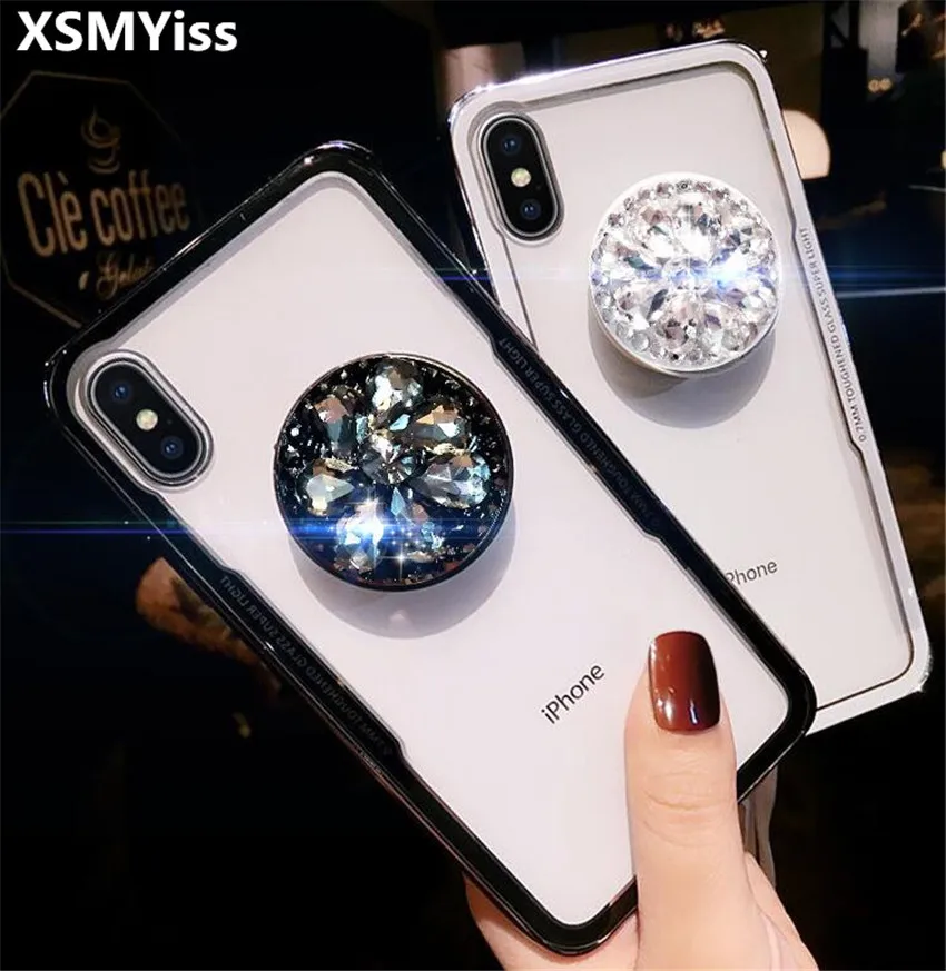 XSMYiss For iphone 5 SE 6 7 8 X 7/8plus 6PLUS Luxury Airbag bracket Rhinestones diamond Glitter case cover Crystal