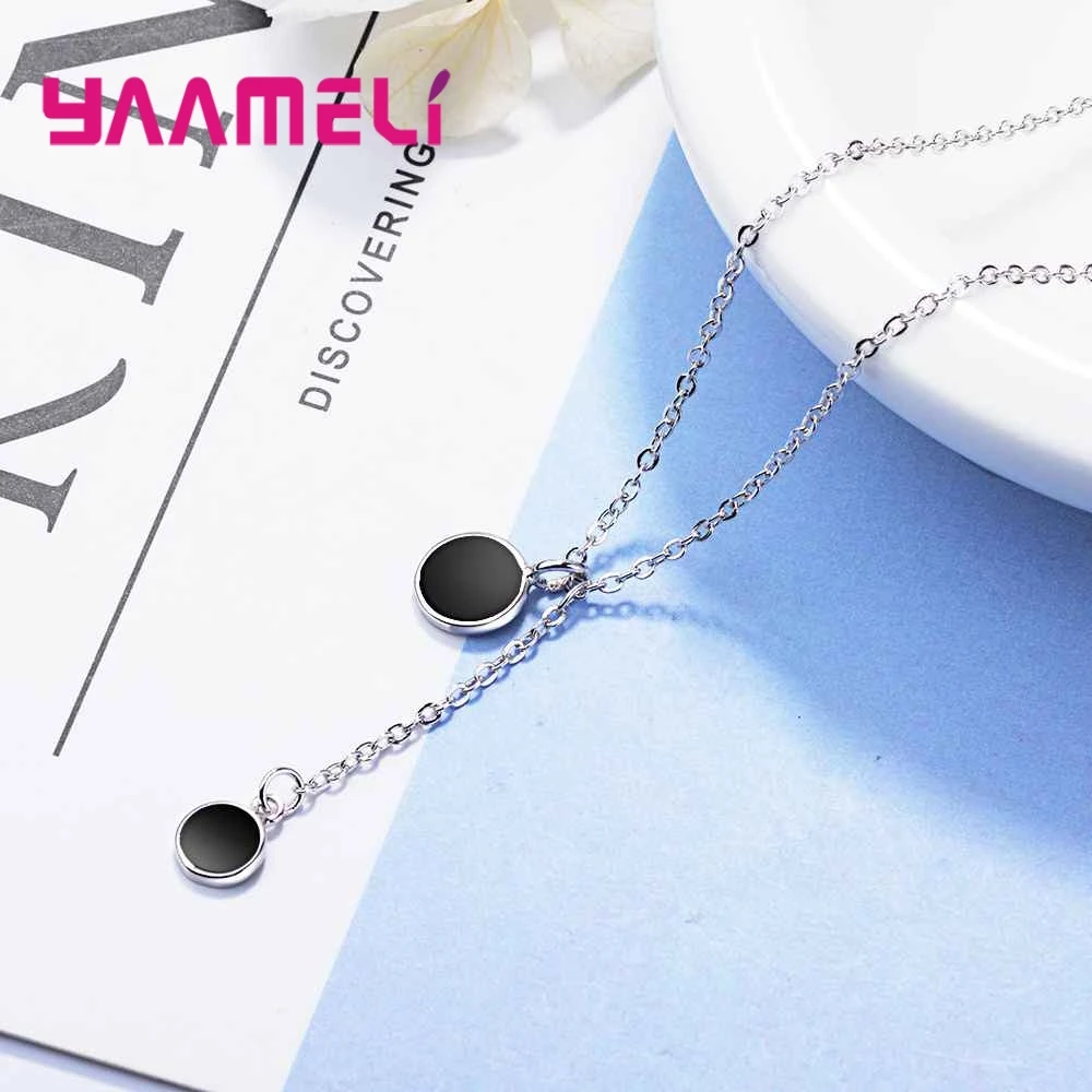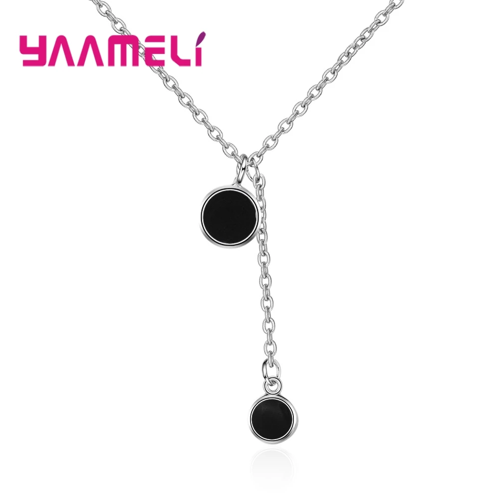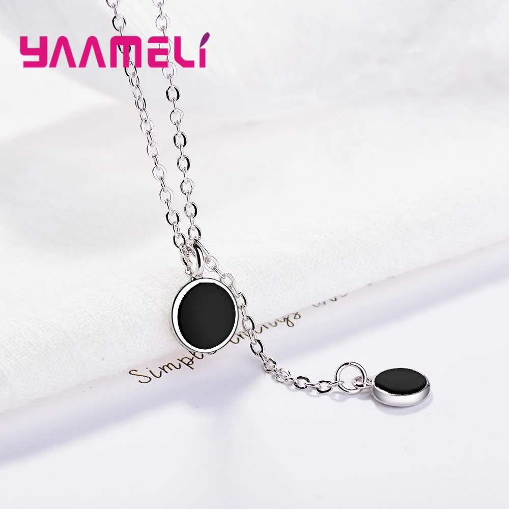 YAAMELI Elegance Black Cubic Zirconia Genuine 925 Sterling Silver Round Necklace Pendant Crystal Jewelry For Women Ladies Gift