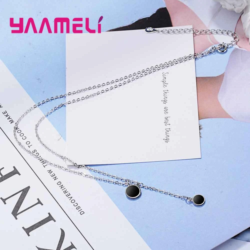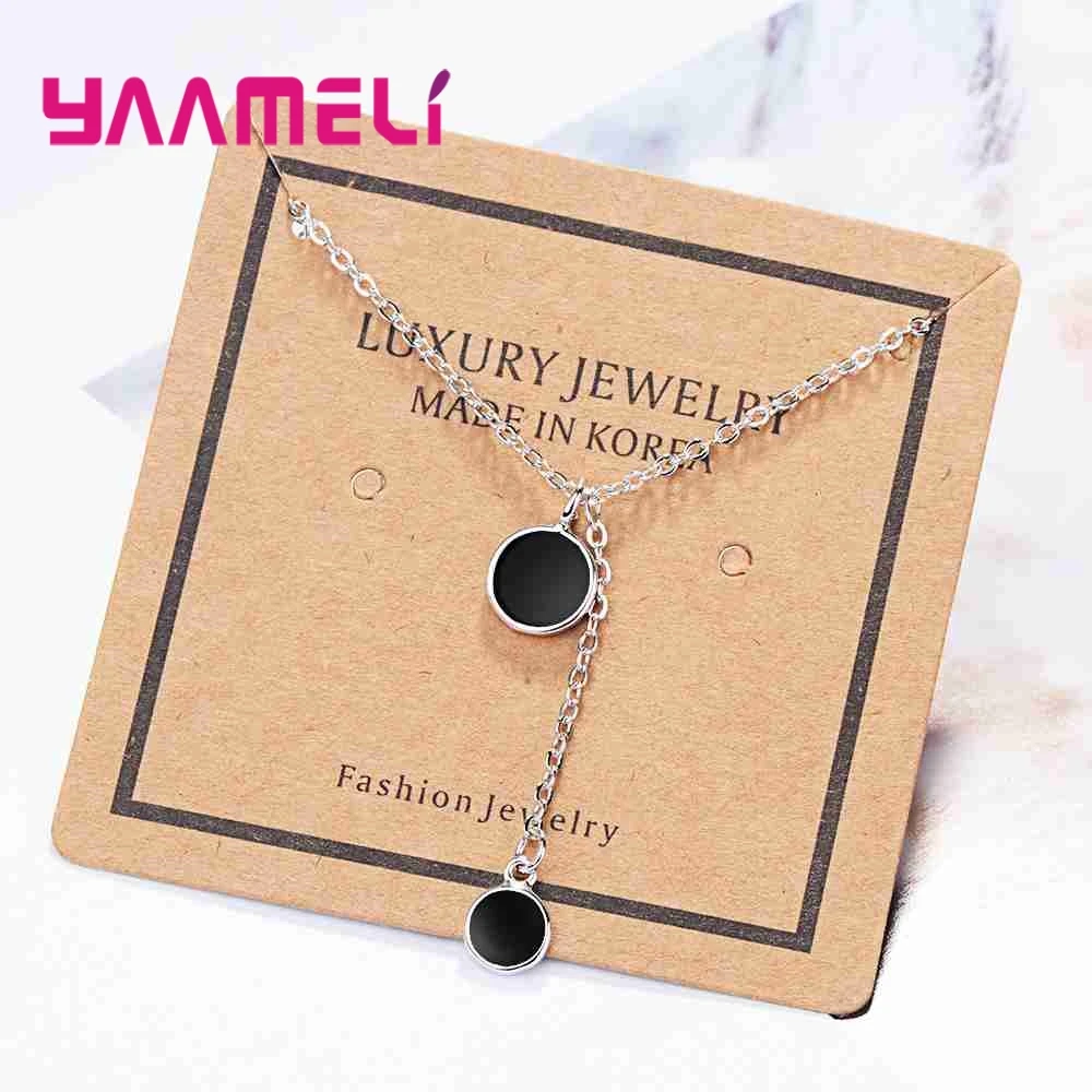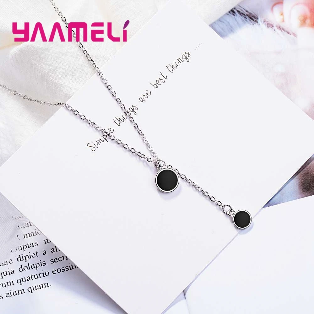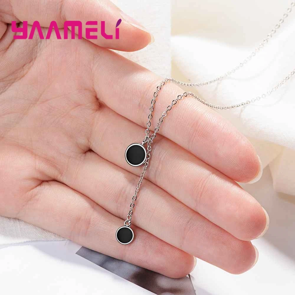 YAAMELI Elegance Black Cubic Zirconia Genuine 925 Sterling Silver Round Necklace Pendant Crystal Jewelry For Women Ladies Gift