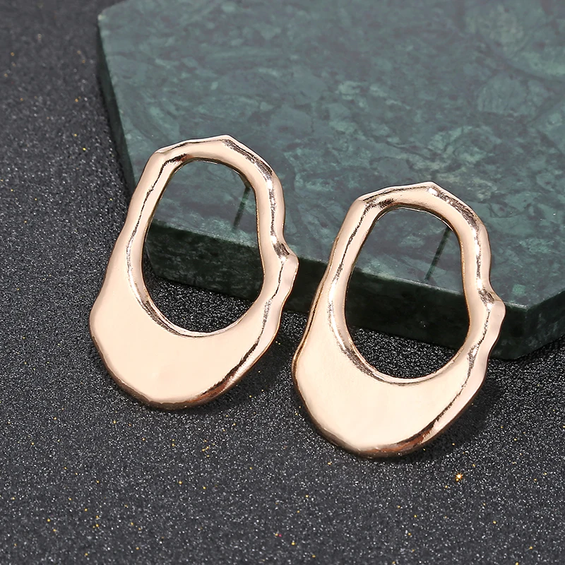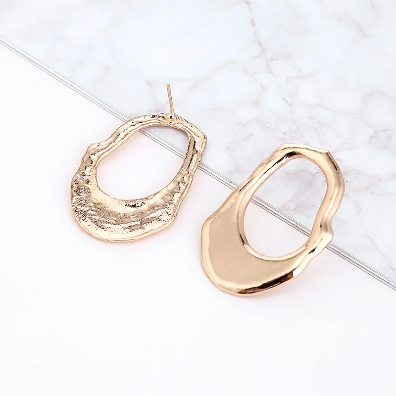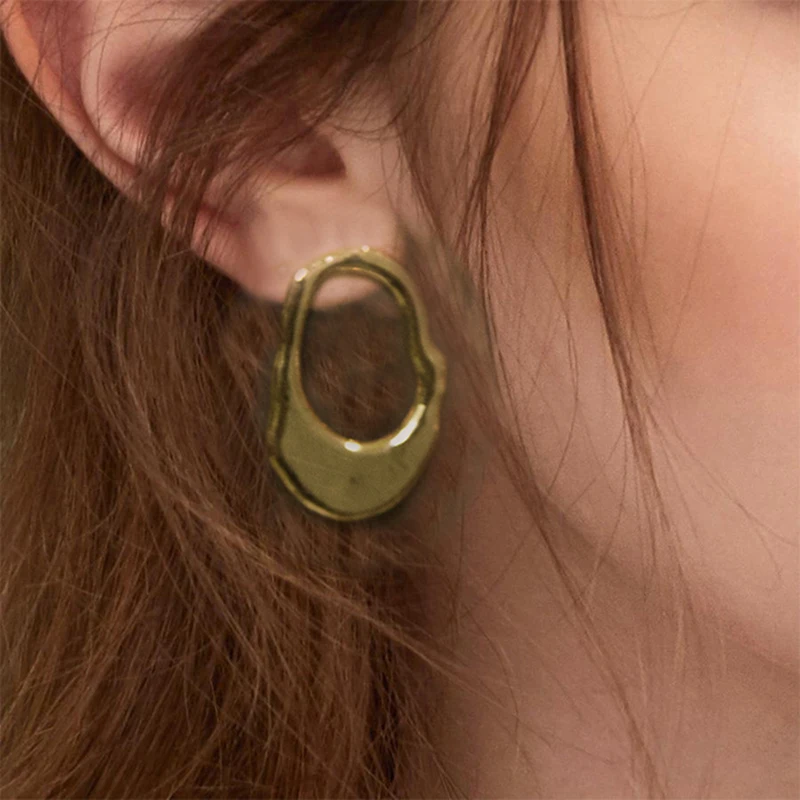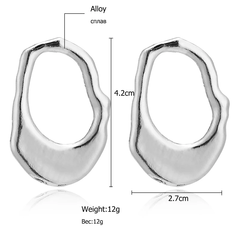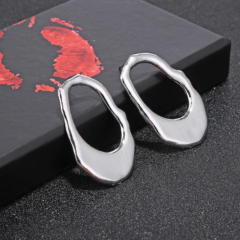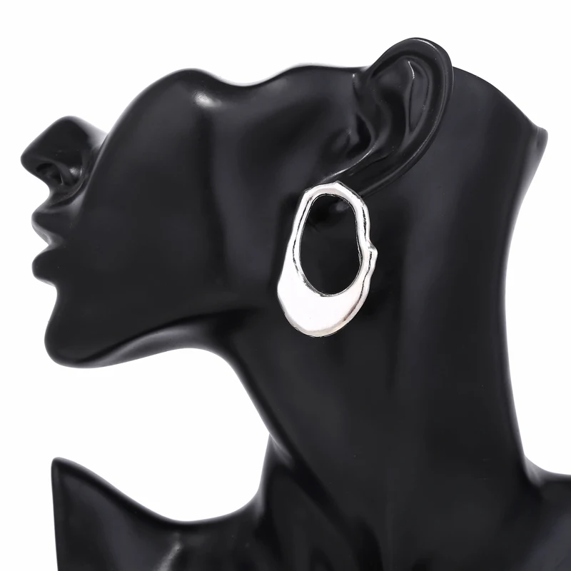 YAOLOGE Simple Street Style Gold Irregular Round Oval Big Circle Metal Earring Silver Vintage Statement For Women Jewelry NEW