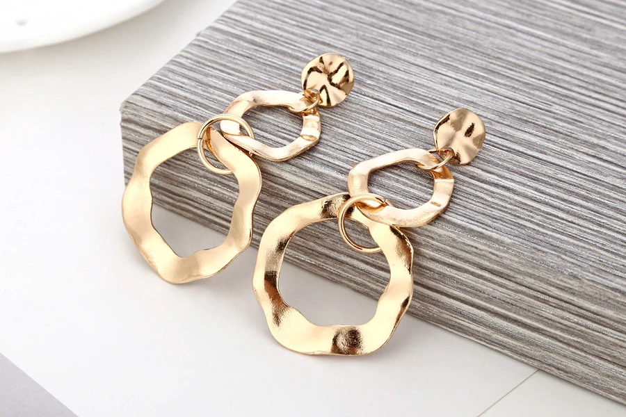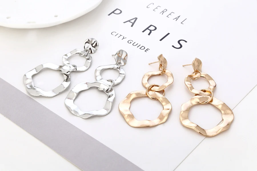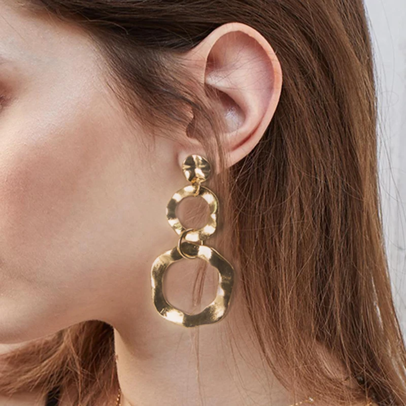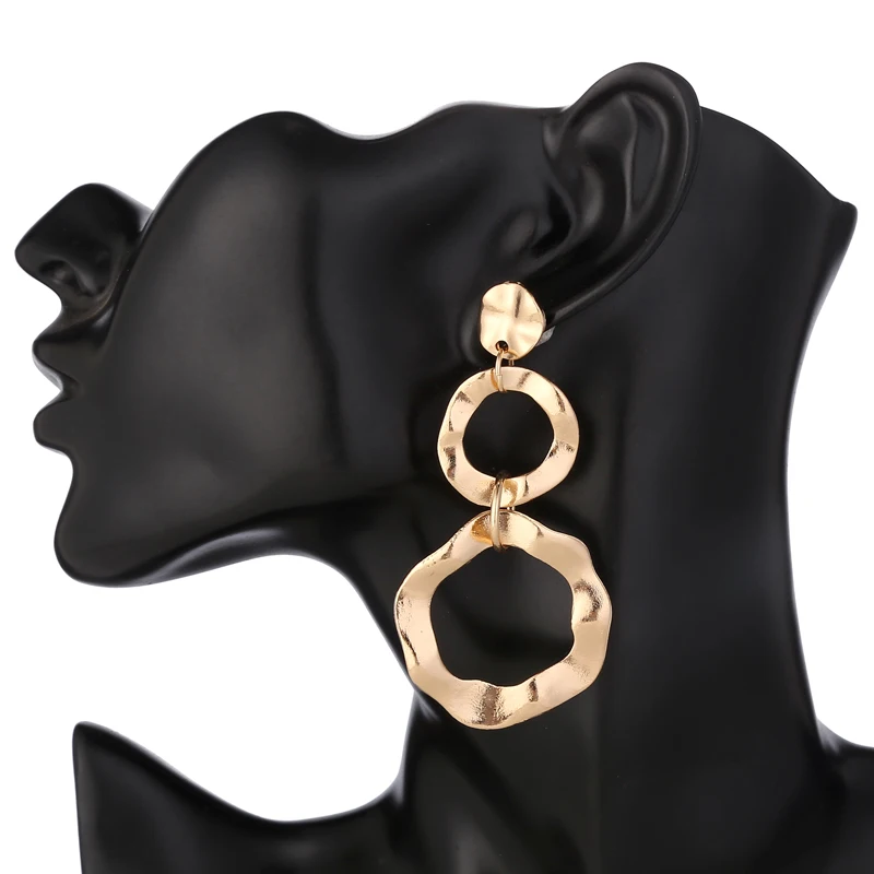 YAOLOGE Simple Twist Irregular Round Large Circle Metal Earrings Gold Silver Statement Bohemian Style For Women Charm Jewelry