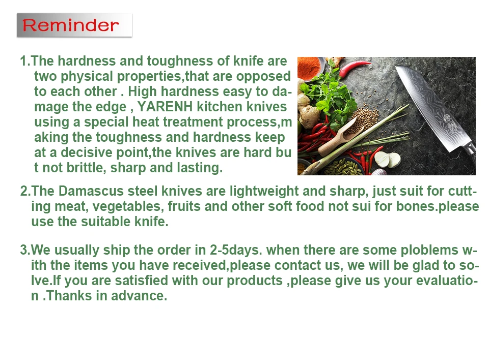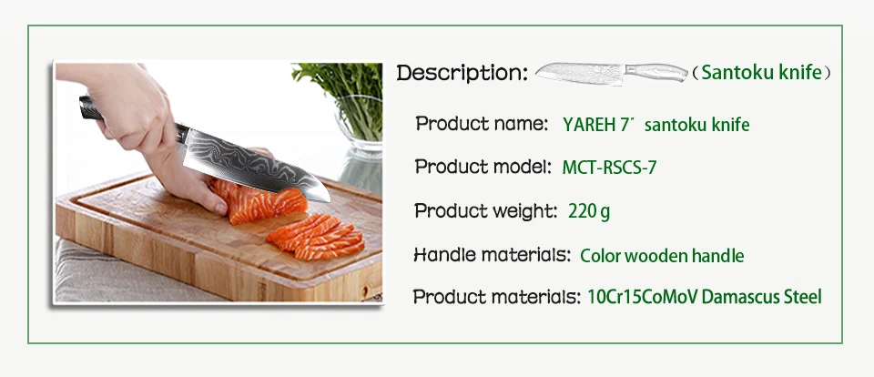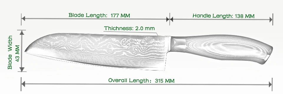 • Product Name:YARENH 7″ damascus steel santoku knife professional chef knives