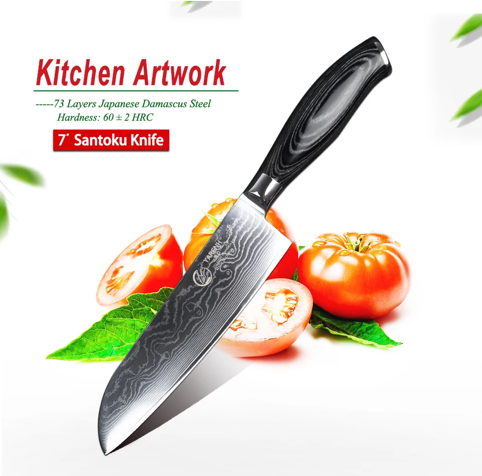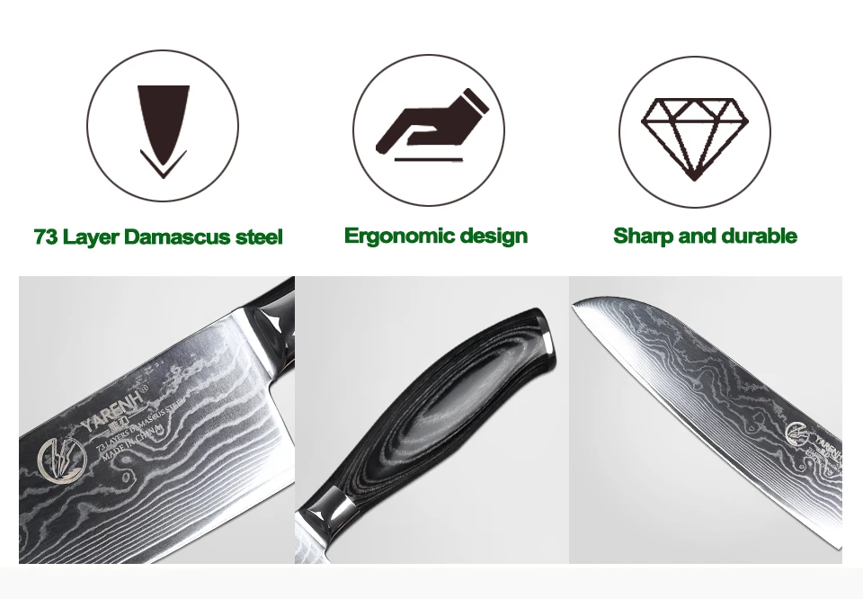 YARENH Santoku knife 73 layers damascus steel kitchen knives Japanese VG10 chef knife with wooden handle best cooking knives