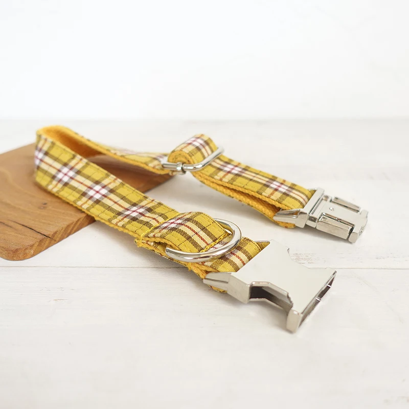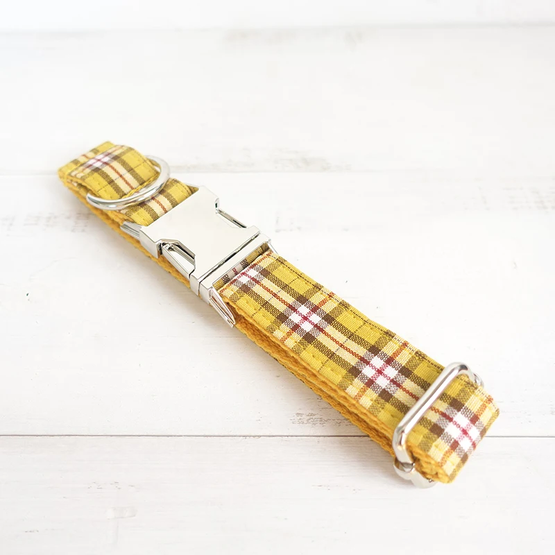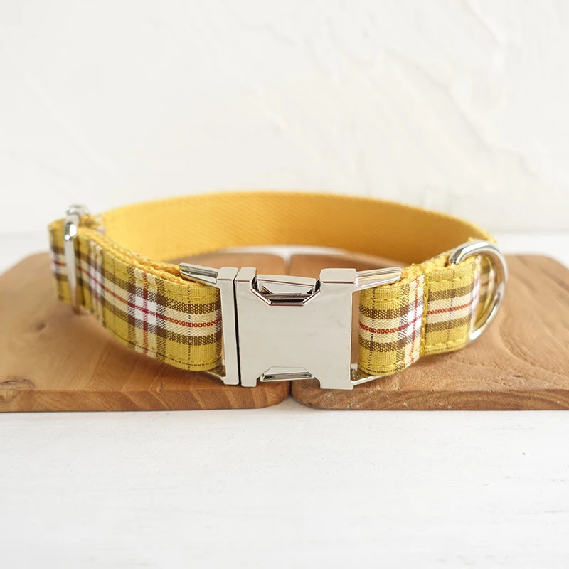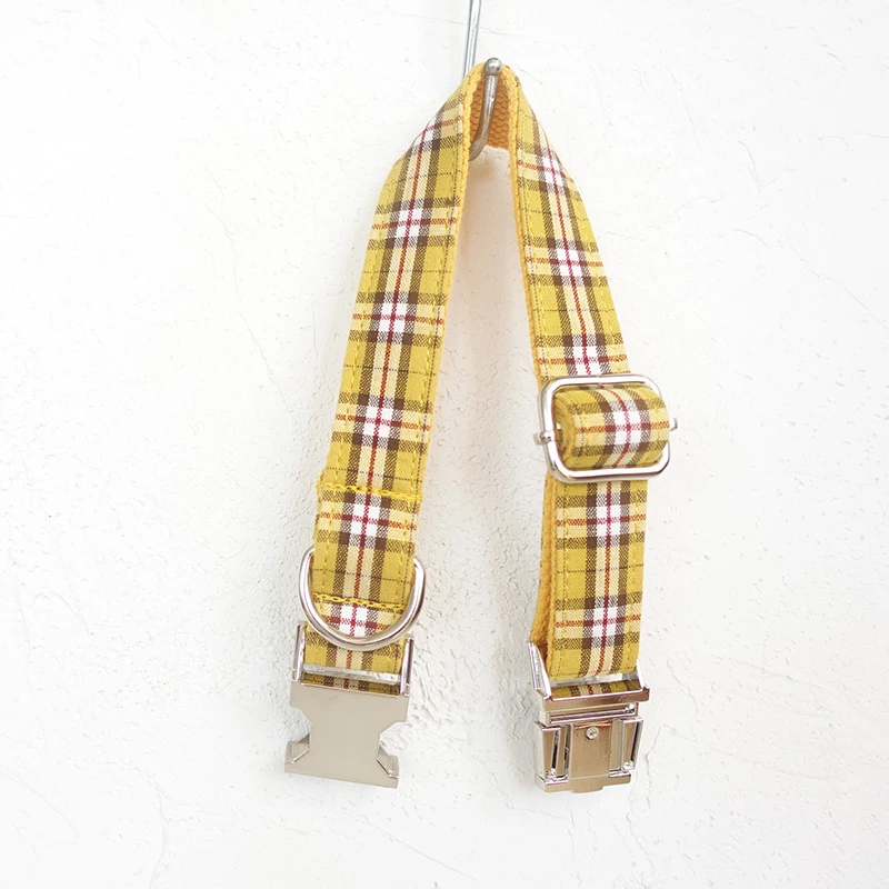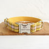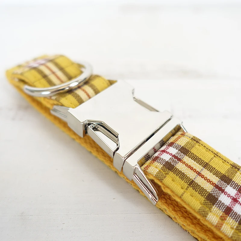 YELLOW PLAID Polyester Webbing Dog Collar with Laser Engraved Personalized Buckle Dropshipping Available