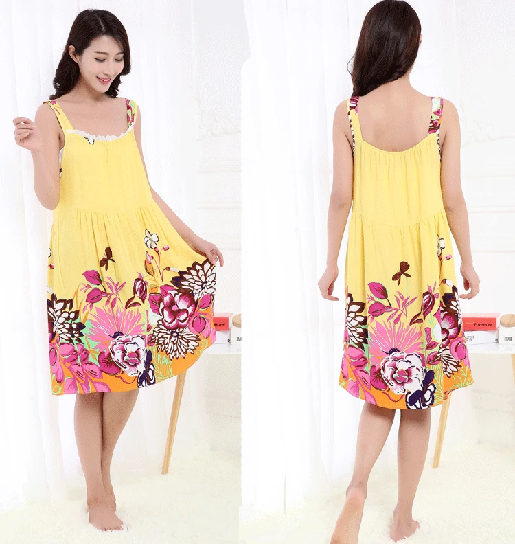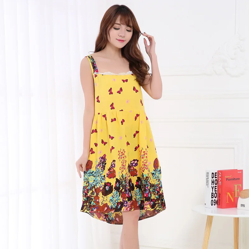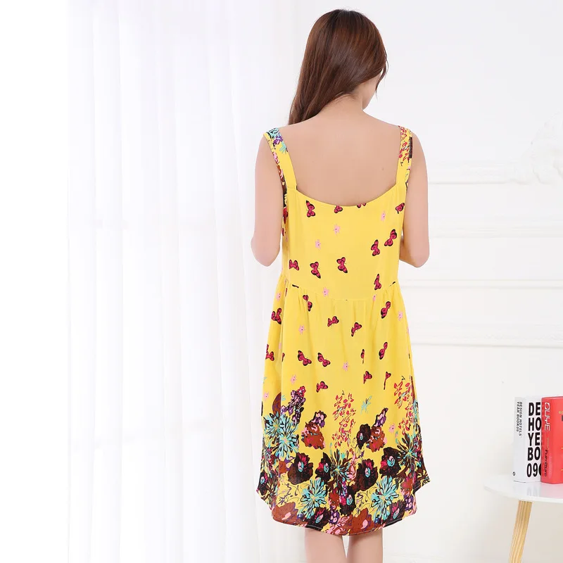 Yellow Women Nightgown Cotton Suspender Skirt Lace Sleepwear Casual Spaghetti Strap Elegant Nightdress Home Dress Oversized 3XL
