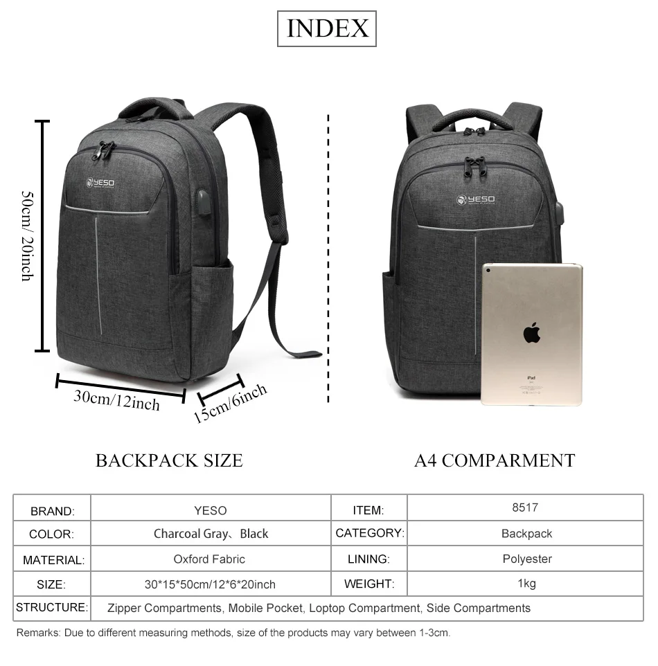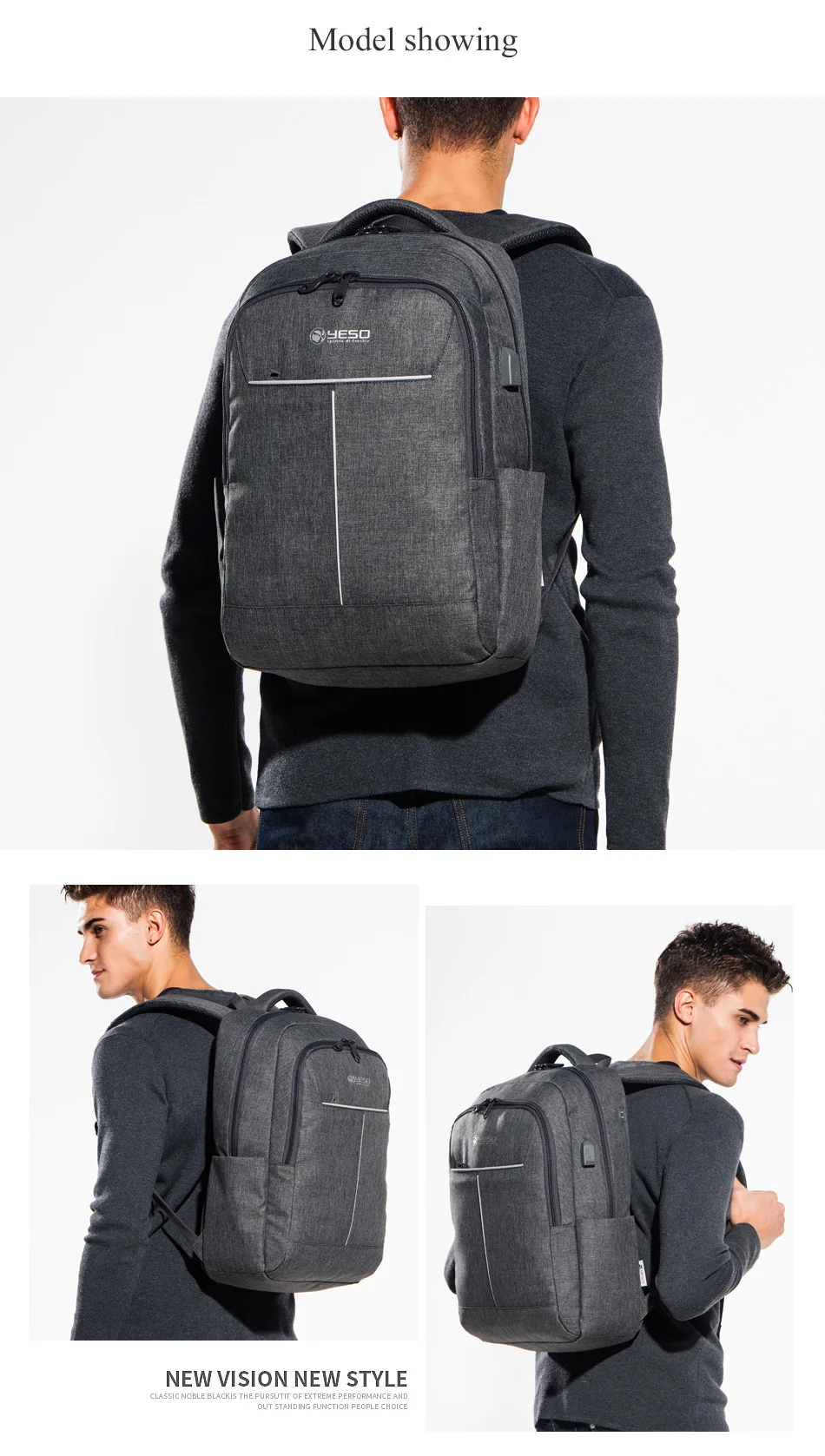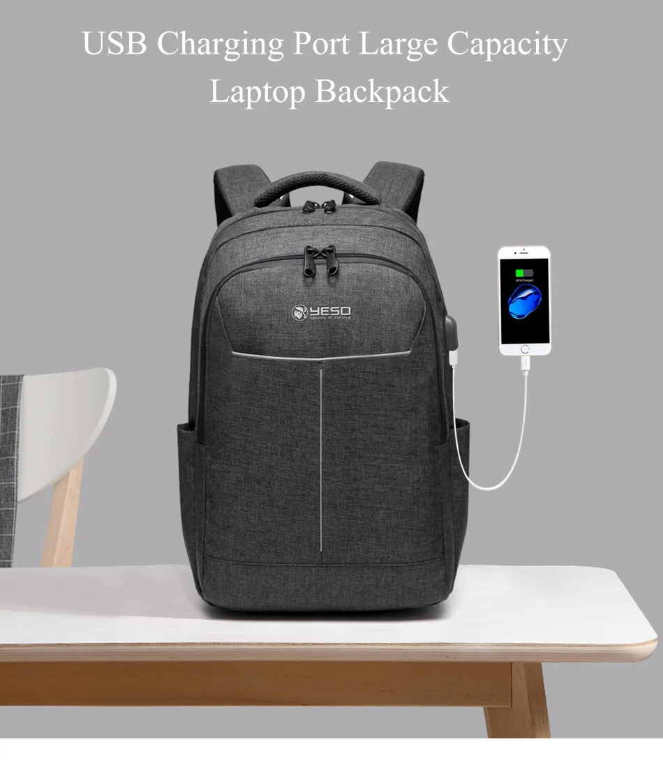 YESO Laptop Backpack Large Capacity With USB Charging Travel Bag For Men Multifunction Business Backpack For Teenager School Bag