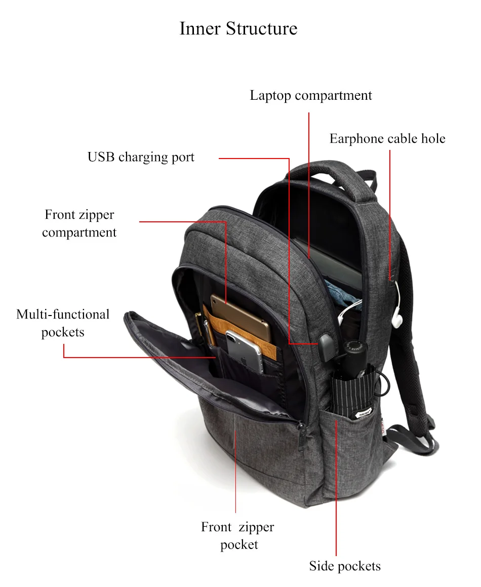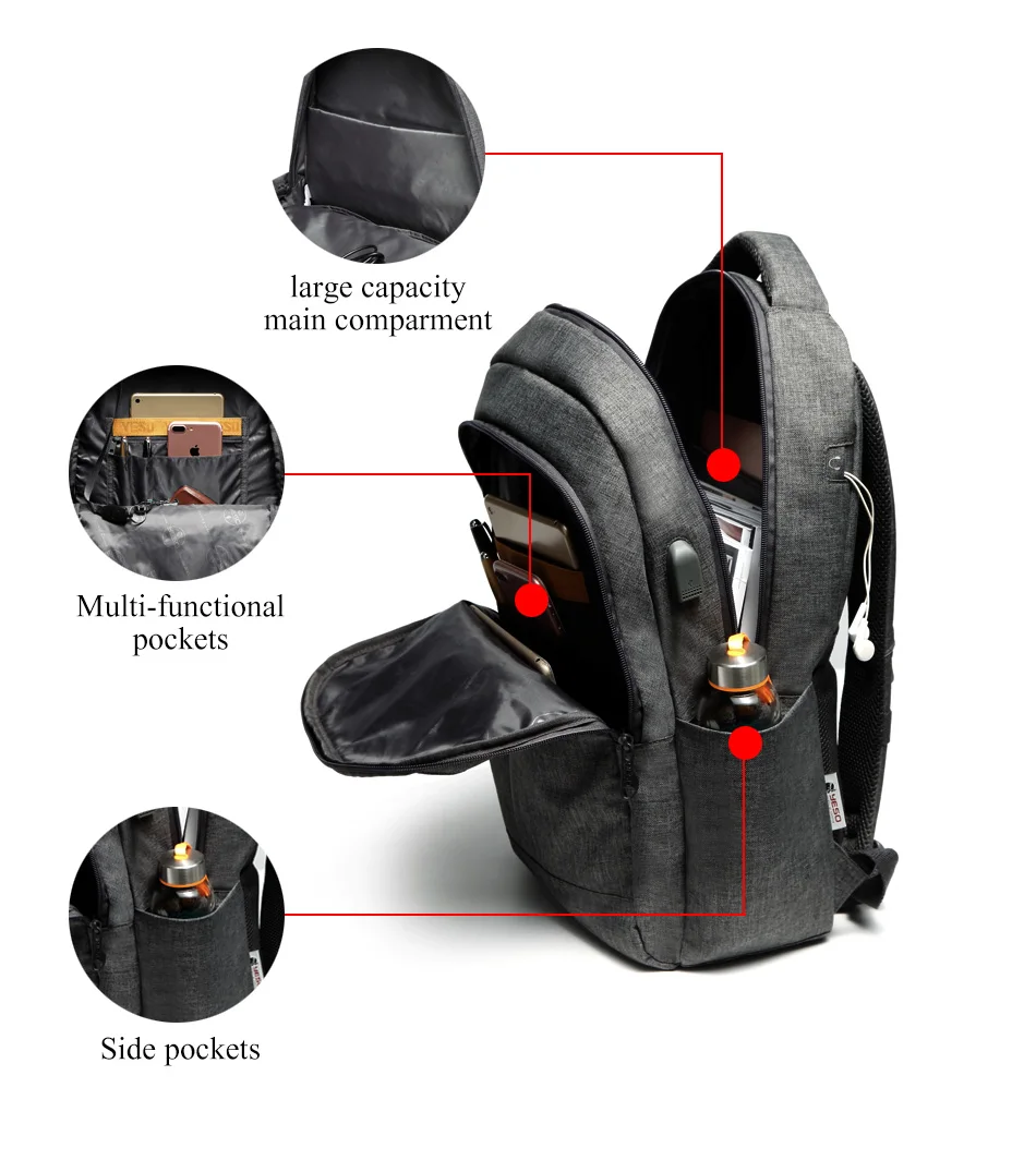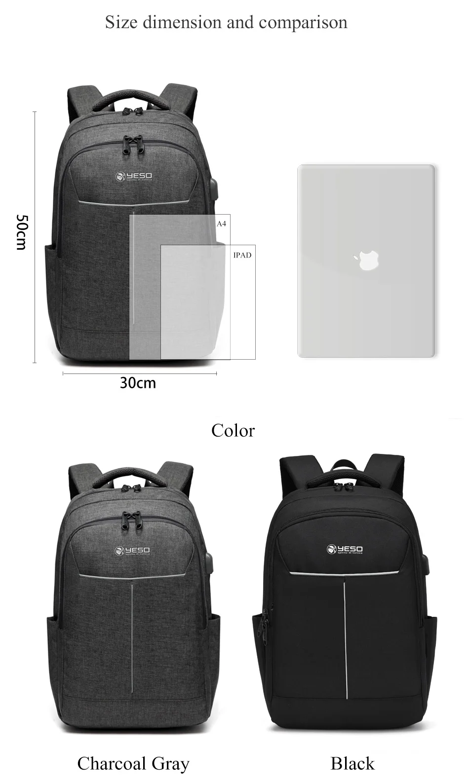 YESO Laptop Backpack Large Capacity With USB Charging Travel Bag For Men Multifunction Business Backpack For Teenager School Bag