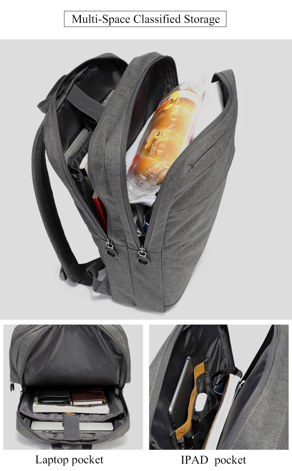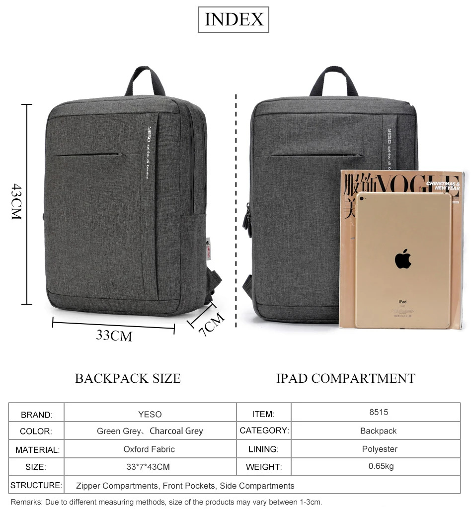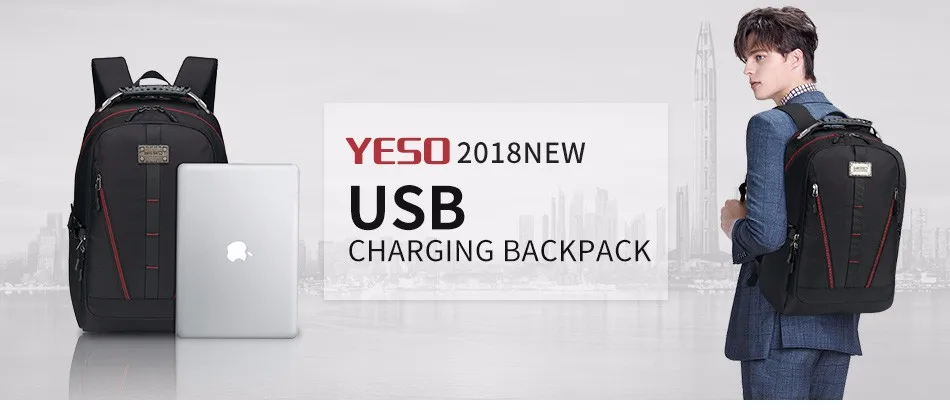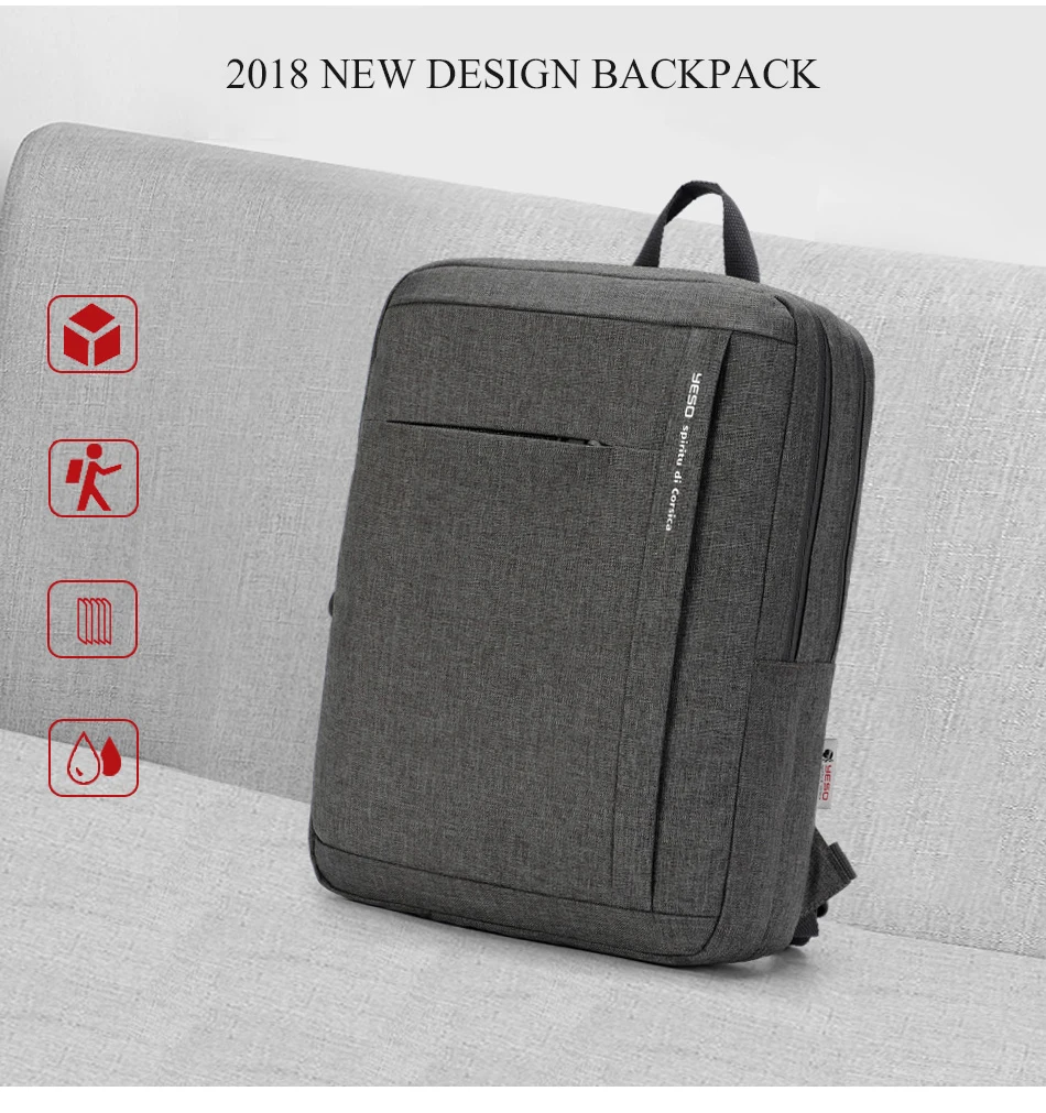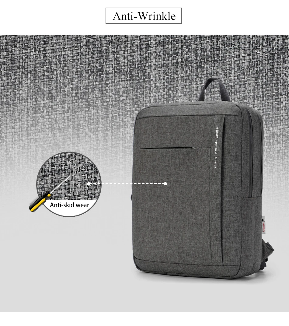 YESO Men’s Laptop Backpack Multifunction Large Capacity Backpack Gray Oxford Leisure High Quality Anti thief Travel Business Bag