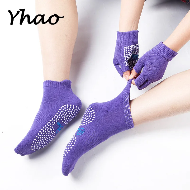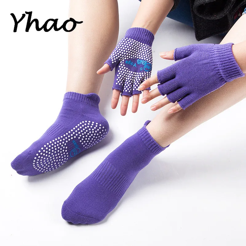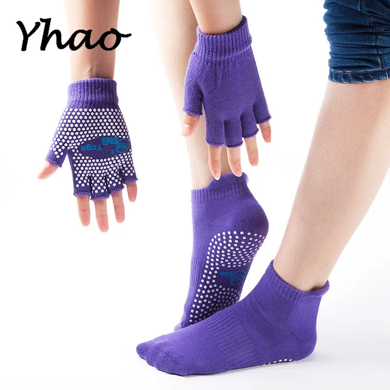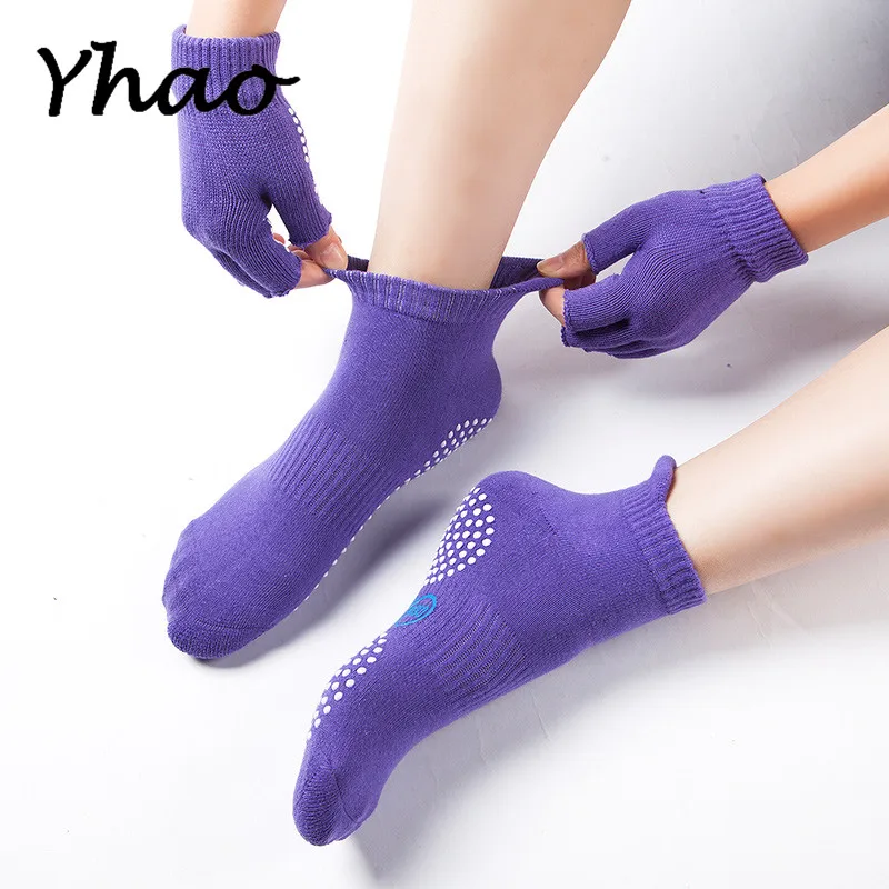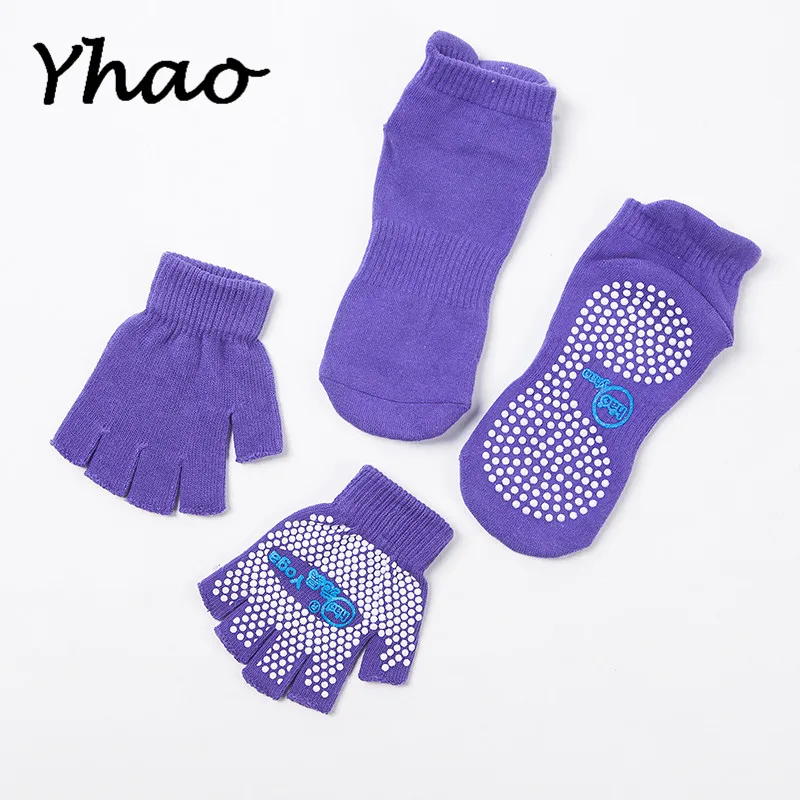 Yhao Women’s Full Toes Yoga Anti-Slip Purple Socks And Gloves For Sports Fitness Pilates Socks