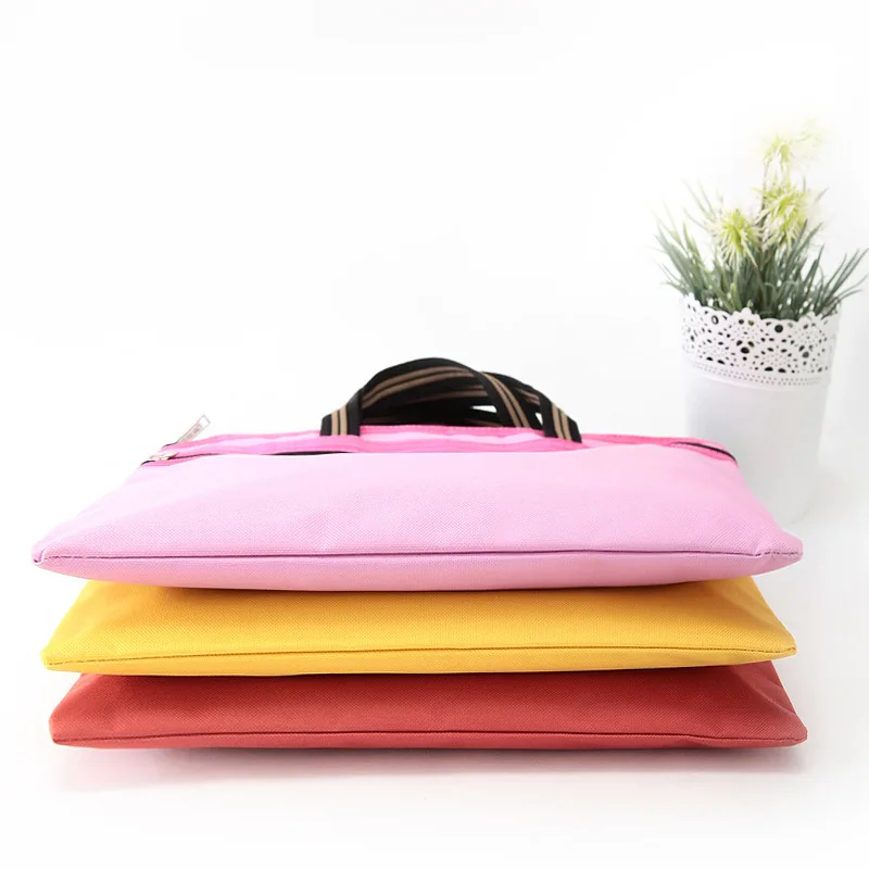 Bright Color A4 Size File Folder Zipper Bag Office Document Handbag 4 Colors 17323