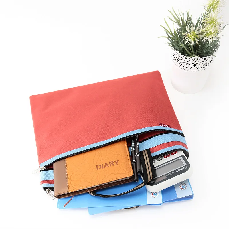 Bright Color A4 Size File Folder Zipper Bag Office Document Handbag 4 Colors 17323