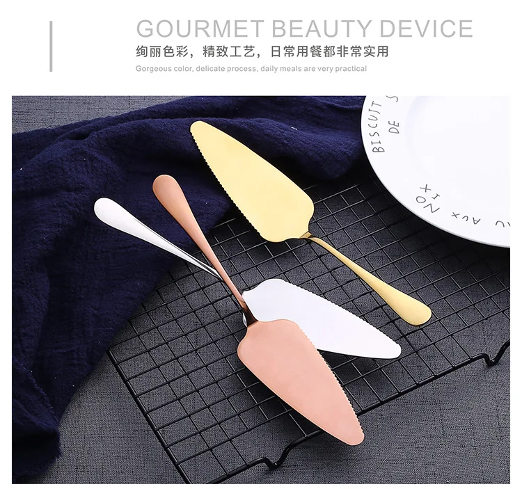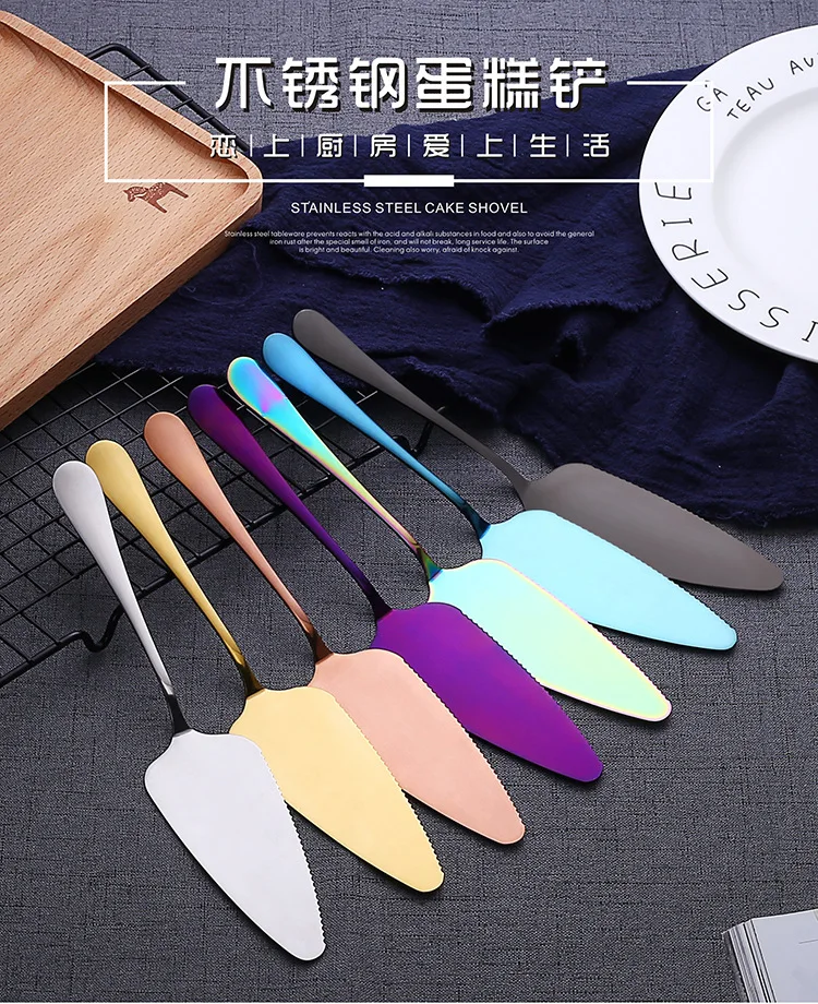YINUO High Grade Cake Shovel Stainless Steel Birthday Knife Titanium Gold Rose Bright Black Baking Pastry Tool Knives