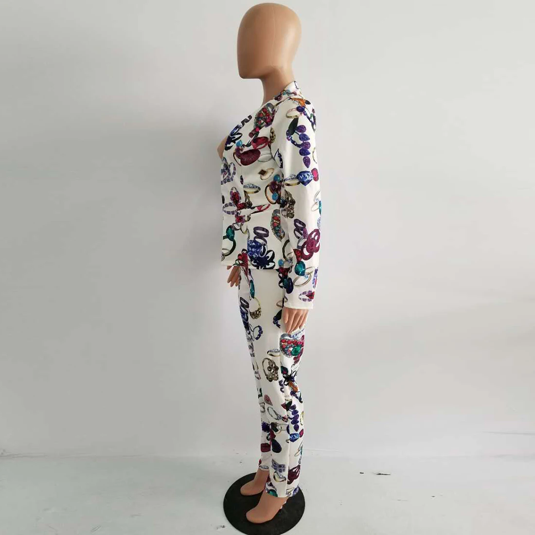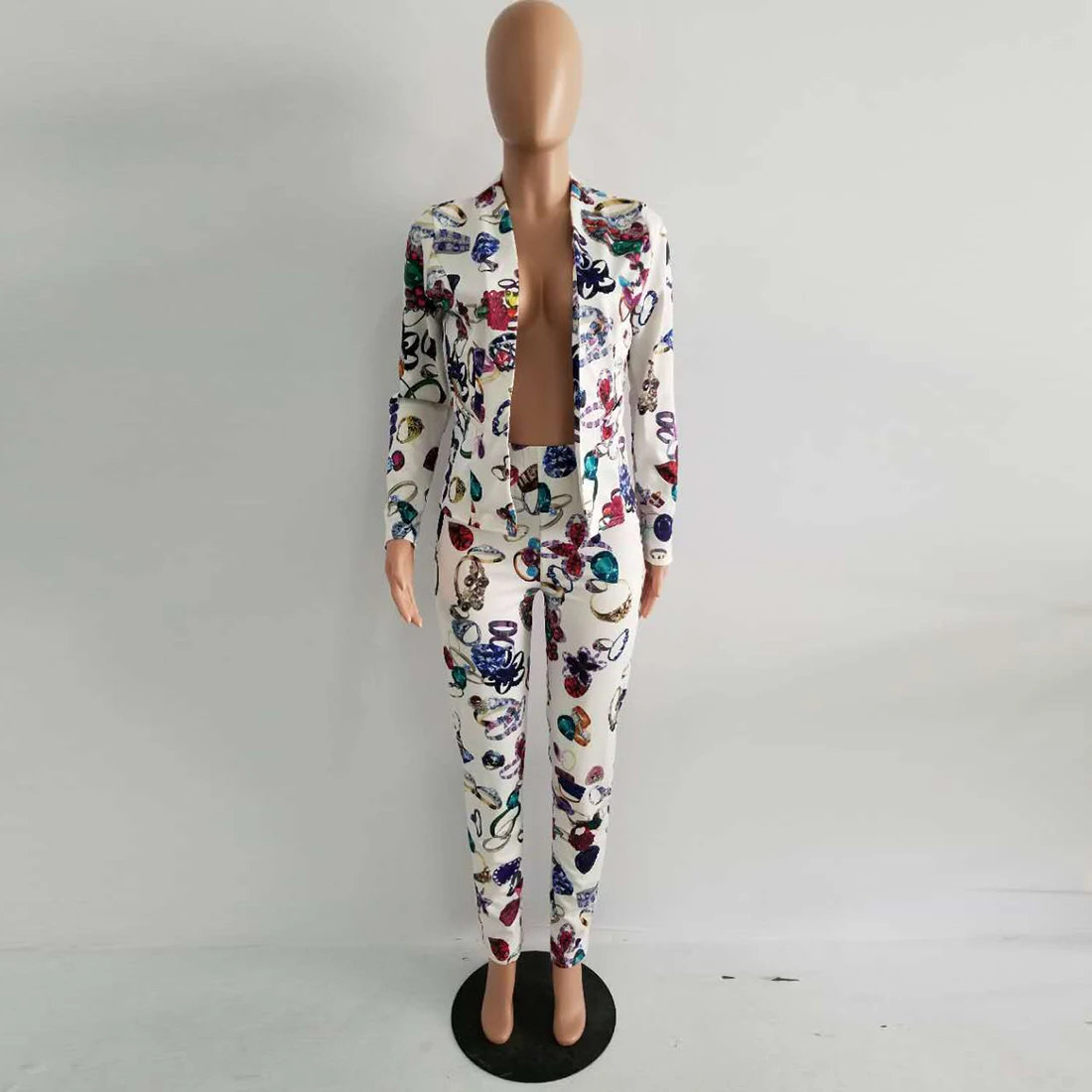 YJSFG HOUSE Elegant Women Business Suits Casual Ladies Autumn Office Work Suits 2017 Blazer And Trousers Print Two Piece Set