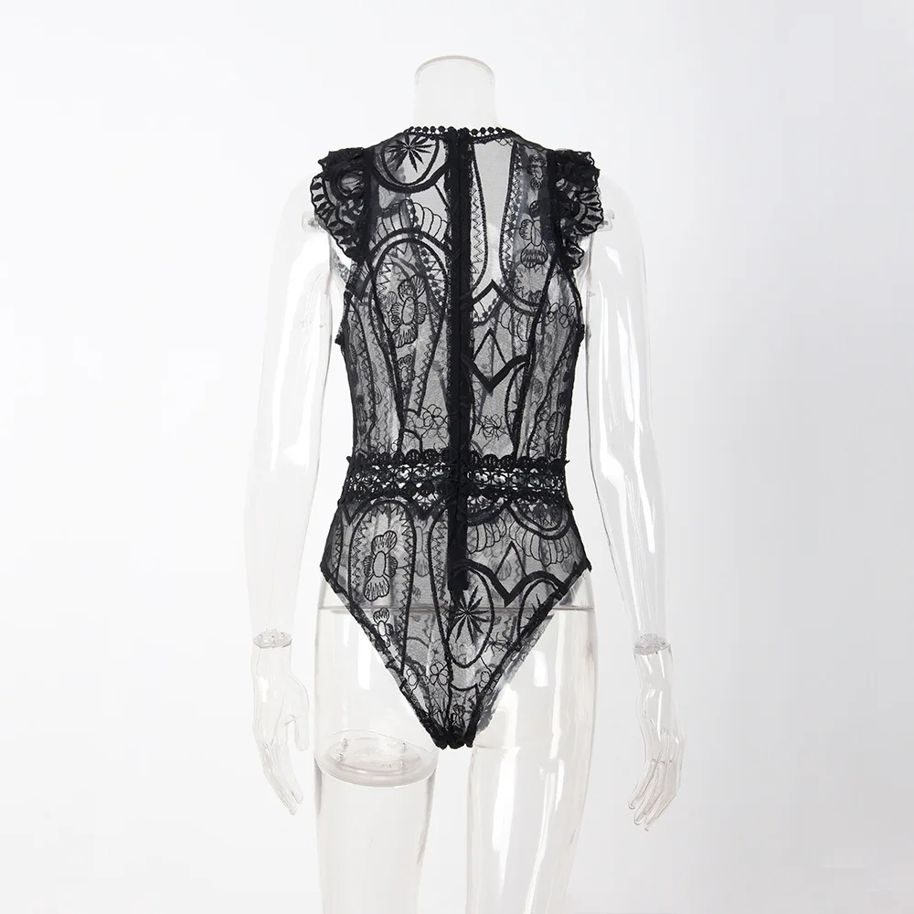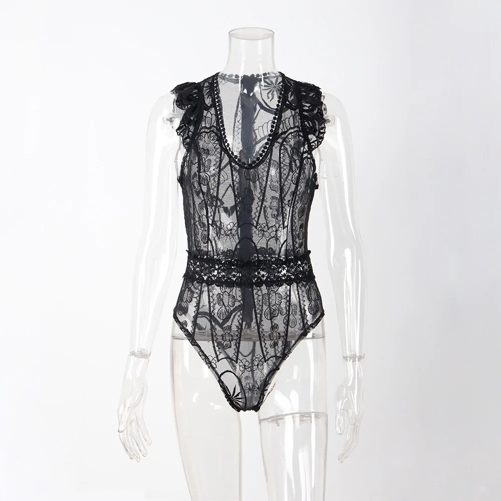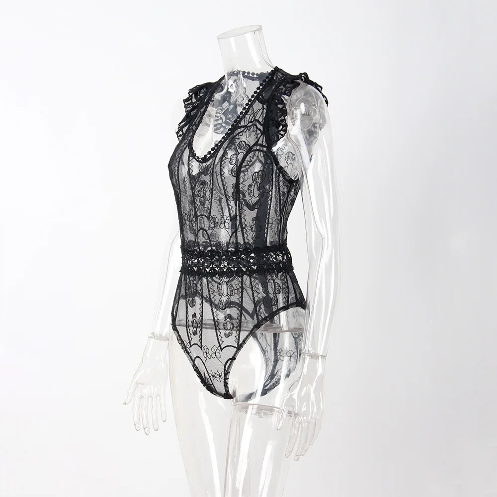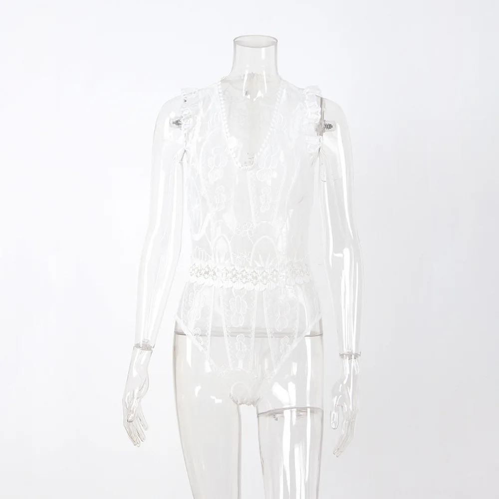 YJSFG HOUSE Sexy Hollow Out Lace Bodysuit Fashion Women One Piece Jumpsuit Rompers 2017 Summer Female Black White Skinny Catsuit