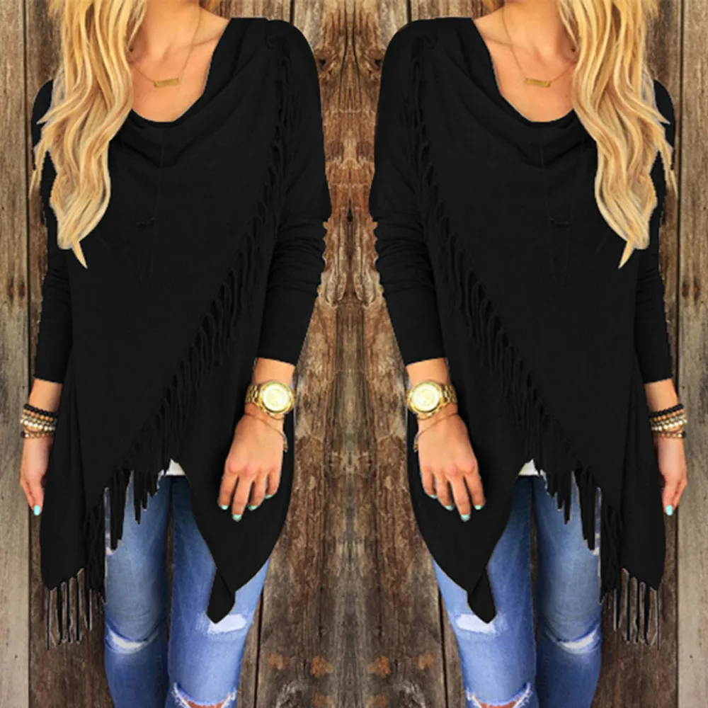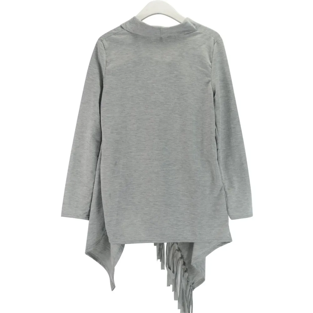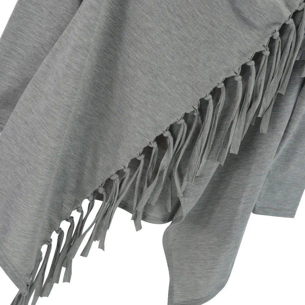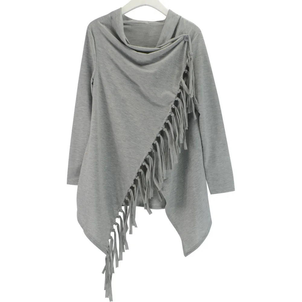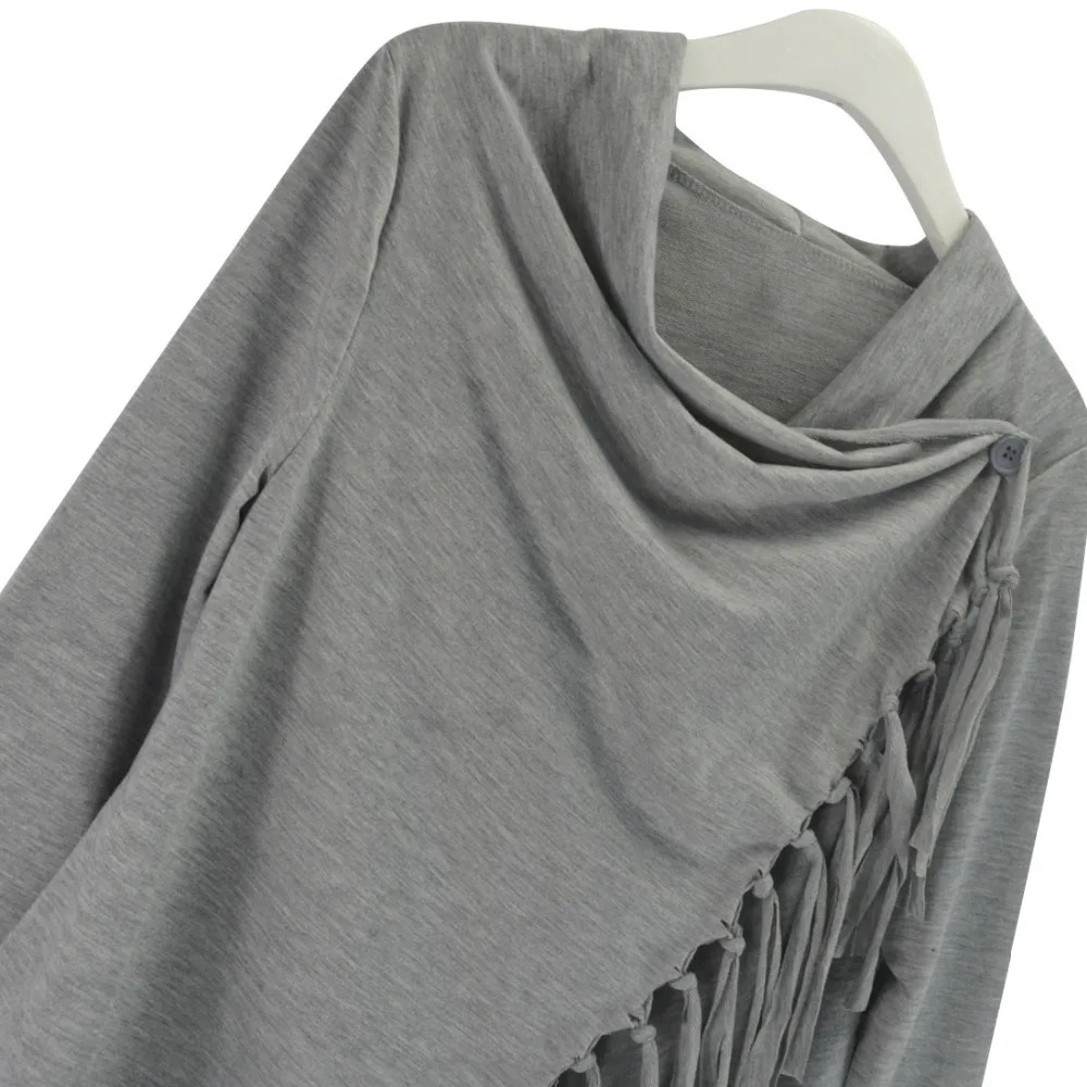 YJSFG HOUSE Spring Autumn Cardigans Tops Women Casual Loose Long Sleeve Irregular Hem Tassel Cardigan Cape Poncho Black Gray