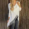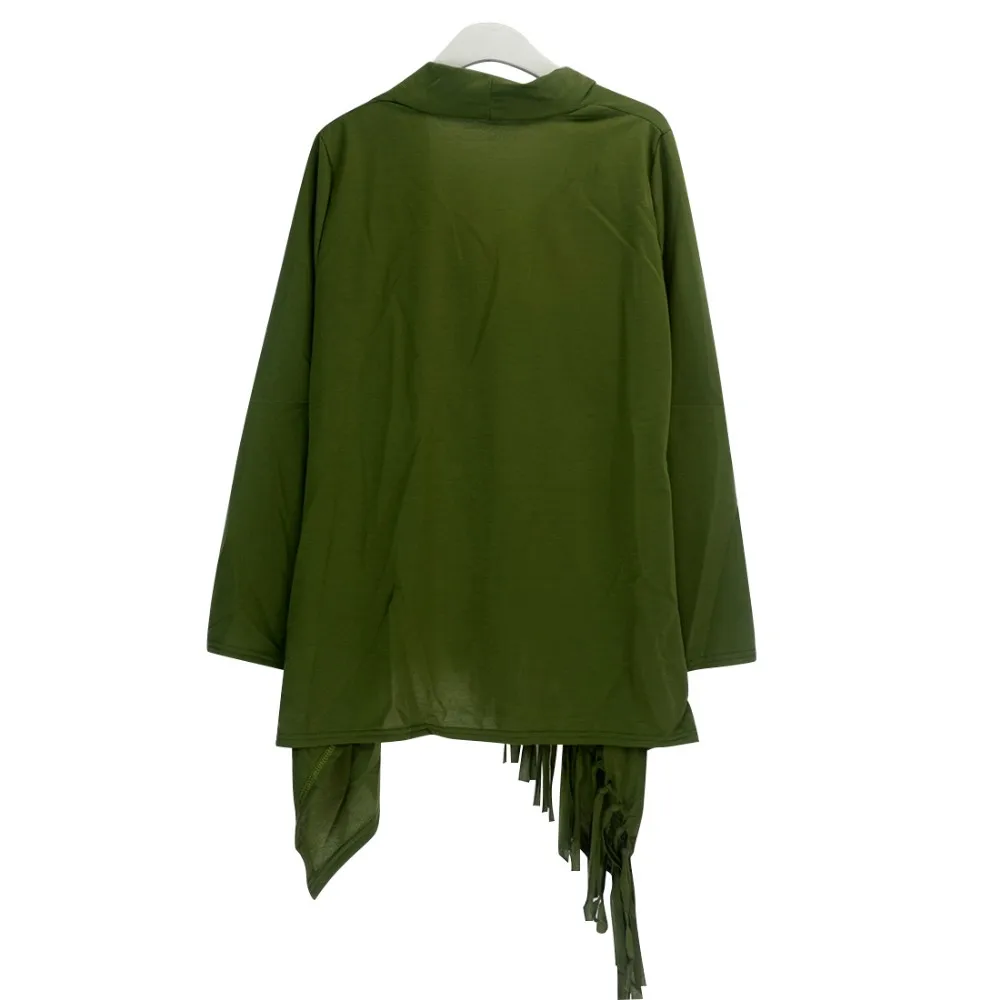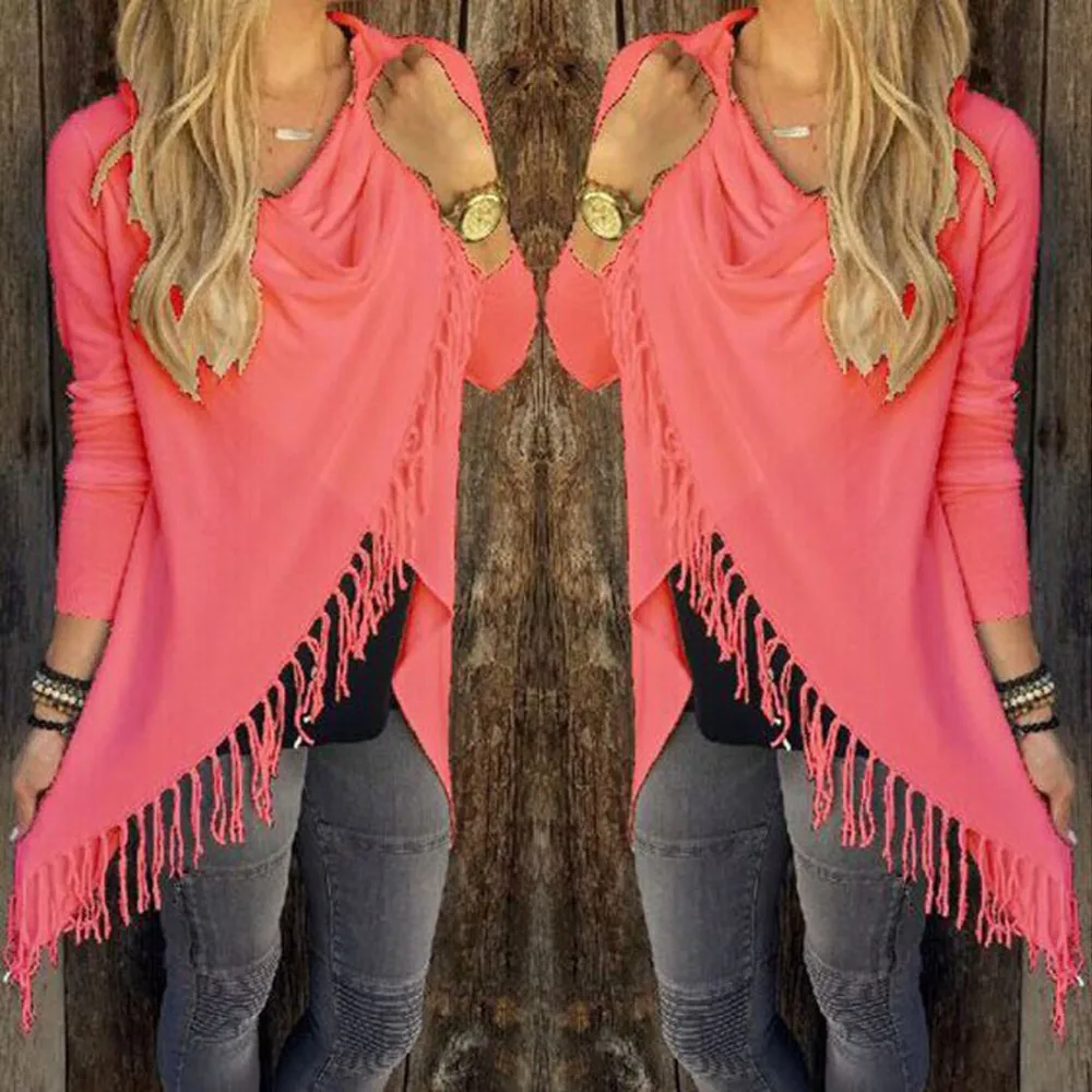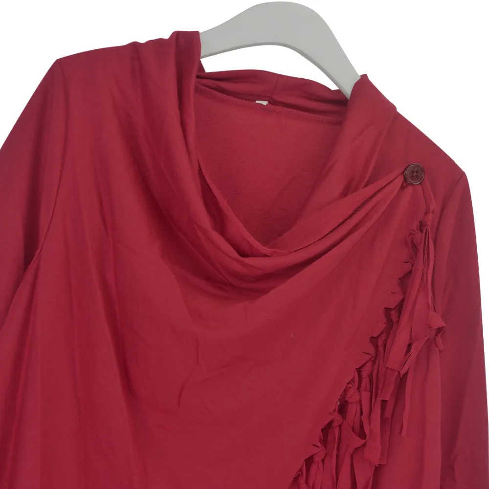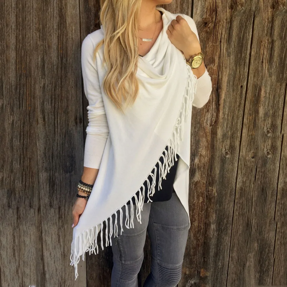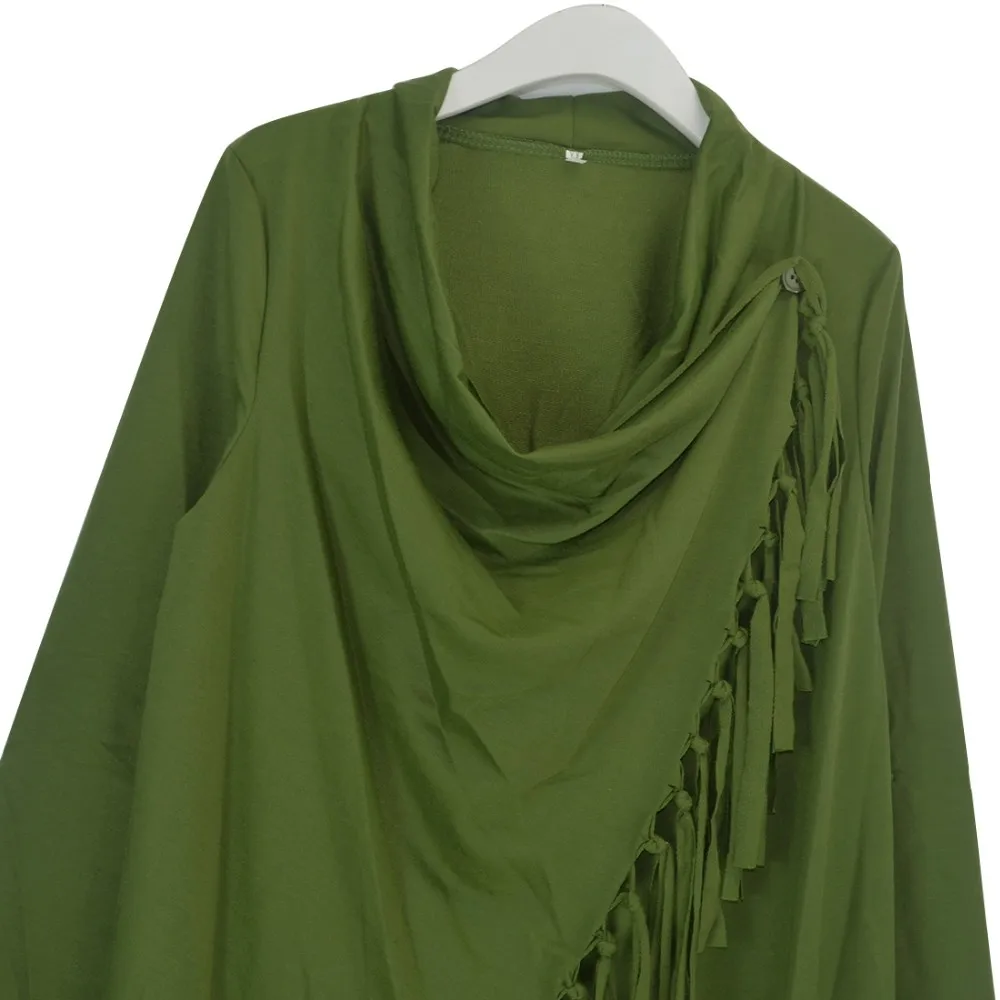 YJSFG HOUSE Spring Autumn Cardigans Tops Women Casual Loose Long Sleeve Irregular Hem Tassel Cardigan Cape Poncho Black Gray