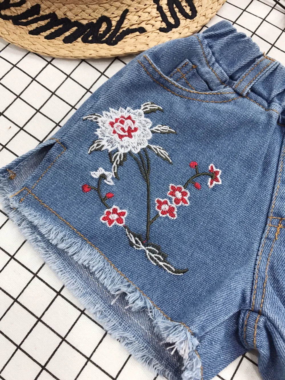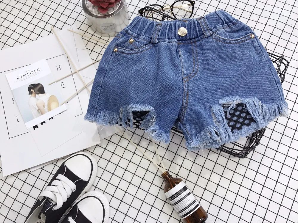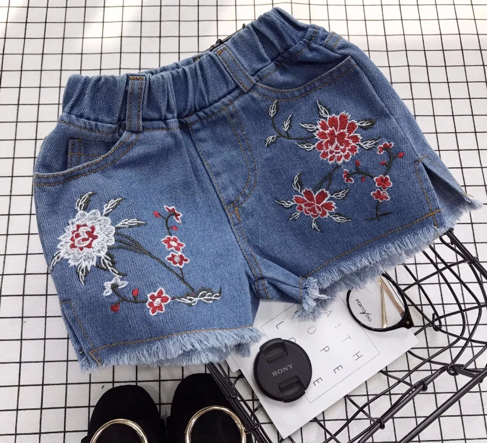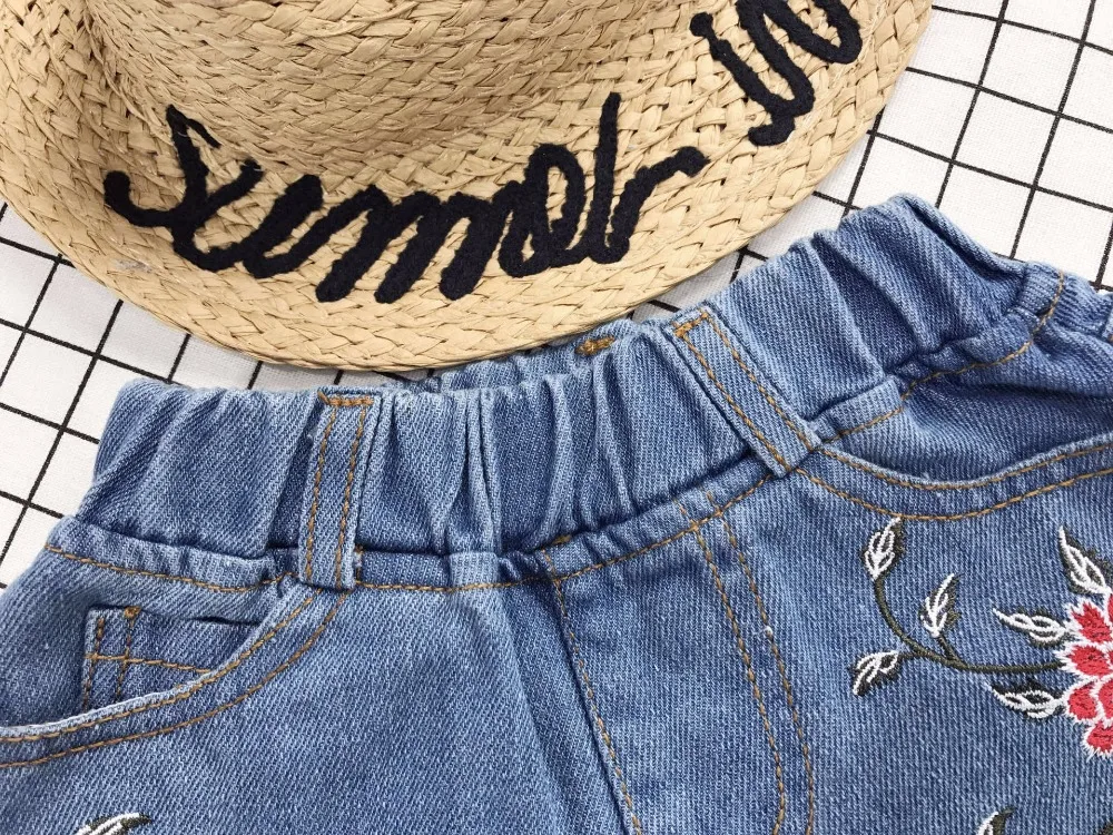 Yorkzaler Kids Short Jeans For Girl Boy Embroidery Ripped Children’s Denim Short Pants Casual Floral Toddler Baby Clothing
