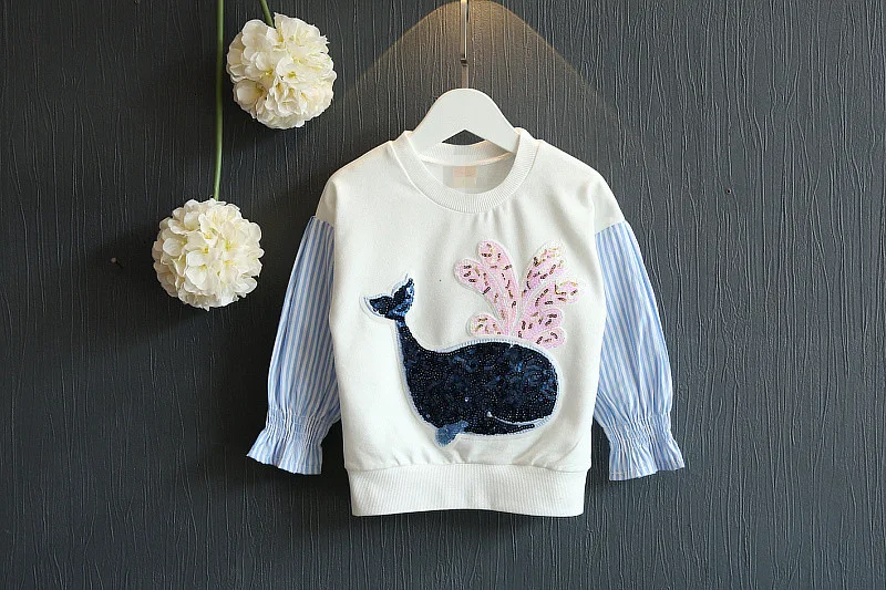 Yorkzaler Kids Sweater For Girl Long Sleeve Stitch Cartoon Dolphin Children’s Tops Tees Fashion Cotton Toddler Baby Clothes