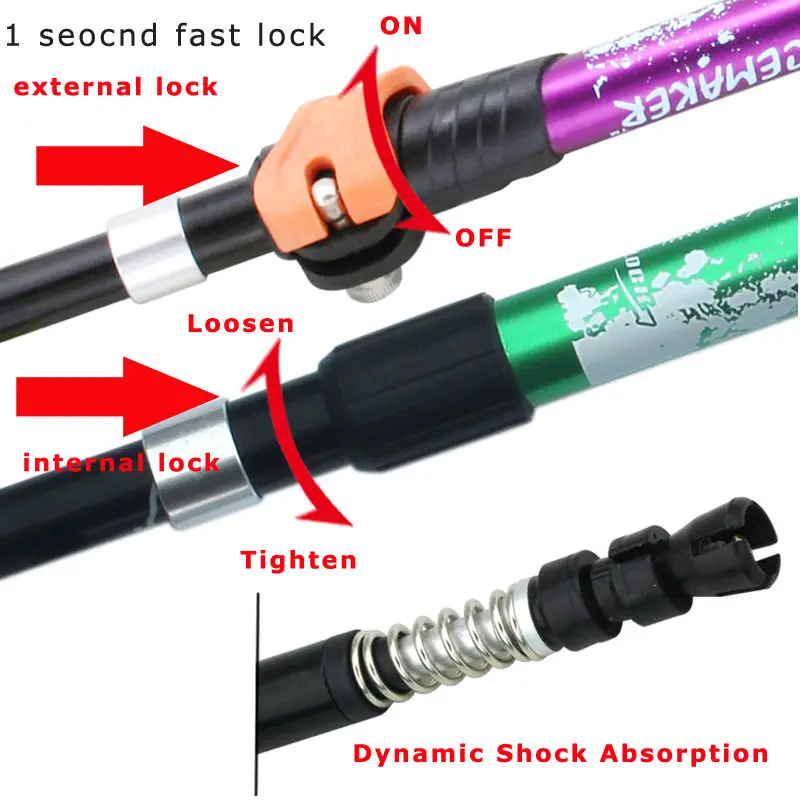 YOUGLE Adjustable 4 Section Alpenstock Komperdell Walking Trekking Pole For Hiking Mounting