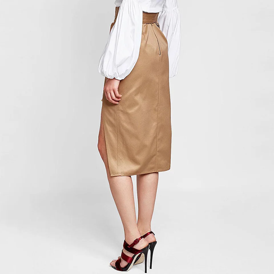 Young17 Autumn Skirt 2017 High-Waist Khaki Fashion England Style Preppy Asymmetrical Winter Button Skirt Women A-Line Skirt