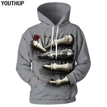 YOUTHUP 2018 Male 3d Hoodies Cool Men Hip Hop Hooded Hoodies Fashion Skull Hand 3d Print Skull Sweatshirts Men Rock Funny Tops