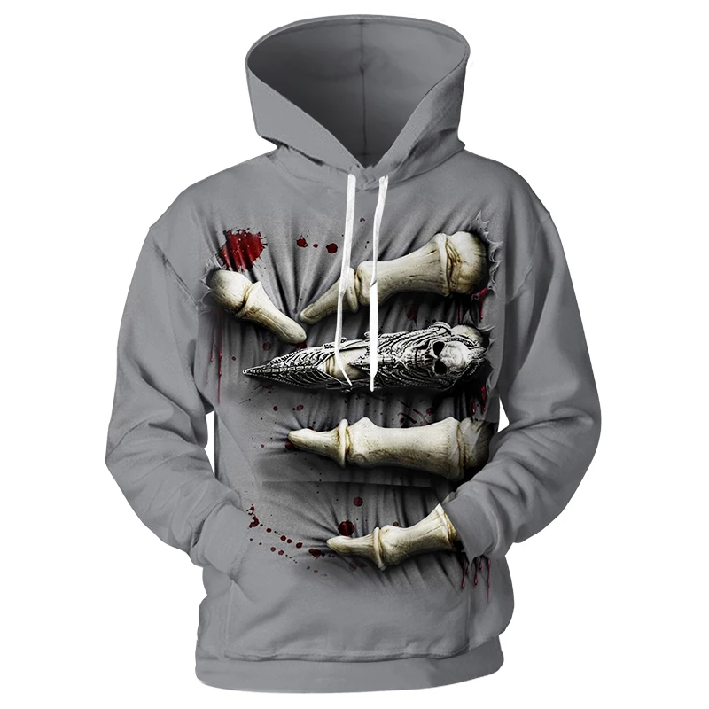 YOUTHUP 2018 Male 3d Hoodies Cool Men Hip Hop Hooded Hoodies Fashion Skull Hand 3d Print Skull Sweatshirts Men Rock Funny Tops