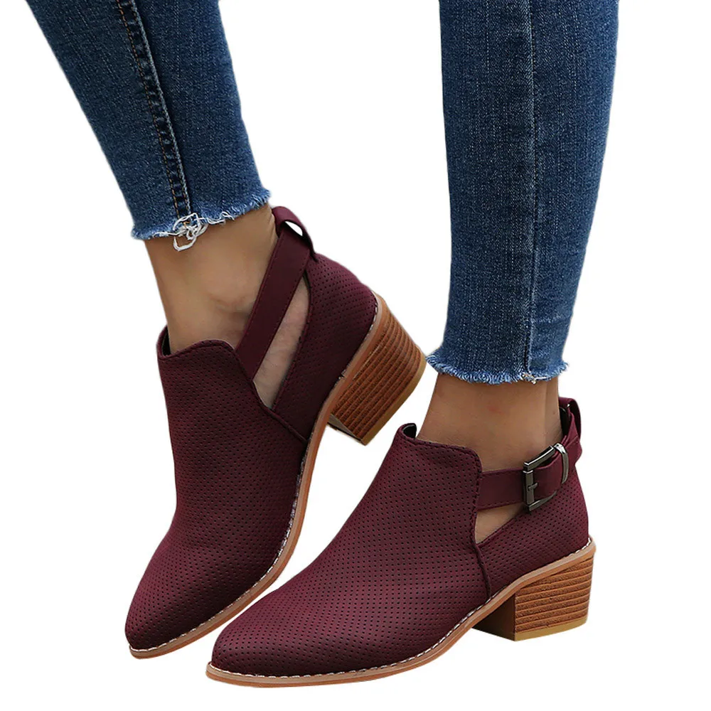 YOUYEDIAN Winter Boots women 2018 Hoollow Out Ankle Boots For Women Pointed Toe Square Heel Ladies Shoes Bota Feminina